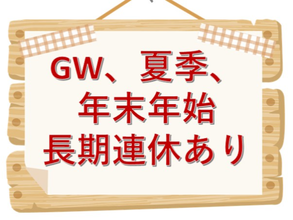 休日休暇 | 休日 日祝休み ※土曜日は会社カレンダー 年末年始休み 夏季休暇あり |