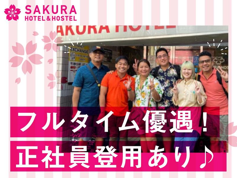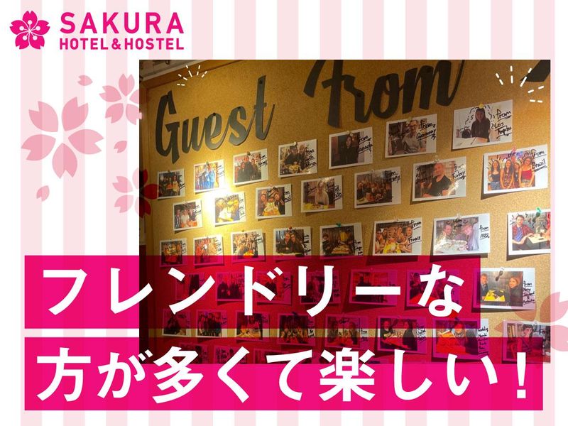 職種/仕事内容 | 仕事内容 \ 国際交流も楽しめるフランクなインターナショナルホテル♪ / 応募者多数につき、週5日にシフトに入ってくださる方、ホテル経験者を優先採用中! 「海外のようなフランクな接客を楽しみたい!」 そんなあなたにピッタリなホテルです! 日勤だけの働き方ができるので、生活リズムも崩れません♪ 正社員登用も率先して行っているので、安定志向の方もご相談ください! ━━…━━…━━…━━…━━…━━ 【仕事内容】 サクラホテル池袋のフロント・受付業務をお願いします。 <具体的には> □フロントでの接客・受付(チェックイン・チェックアウト) □メール・電話対応 □ご予約の受付・管理 □館内清掃 など ☆未経験からホテルスタッフとして活躍できる研修と充実のサポートあり! ━━…━━…━━…━━…━━…━━ \ SAKURA HOTEL&HOSTELって? / 外国人旅行者向けホテルとして、1994年に創業、約150ヶ国以上からゲストが訪れるサクラホテル・ホステル。 海外のゲストが多く、日本での観光話や母国のお土産話などでスタッフとも盛り上がり、グローバルな交流を楽しんでいます!その光景はまるでゲストハウスのよう♪ 日々、ゲストとスタッフの笑顔と笑い声が心温まるホテルです。 \ 語学を活かせるシーンも沢山♪ / 生の英会話に触れられるチャンスも多いので、日本に居ながら語学留学のような体験ができるのもSAKURA HOTELで働く大きな魅力☆ もちろん、英語が得意ではない人でも大丈夫です◎周りの語学に精通したスタッフがバトンタッチ・フォローに入りますのでご安心ください。日々の業務を通じて自然と語学スキルが上がっていきますよ♪ \ シフトは柔軟に対応OK!! / 週3日~OKですが、週5日・フルタイムでシフトに沢山入れる方は優先採用中です!夜勤も同時募集しているので、時間・曜日などは遠慮なくご相談ください! ▼より詳しい情報はぜひHPへ! https://ja.sakura-hotel.co.jp/ikebukuro/ |