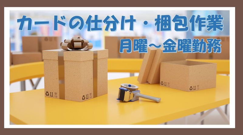 職種/仕事内容 | 仕事内容 ✨各種カードの仕分け・梱包作業のお仕事✨ ✨未週3日~勤務OK!✨ ✨越谷周辺・地元の方が多く在籍中!✨ ⏩トランプなどの各種カードゲーム商品 を機械で仕分けたり袋詰めする作業です。 難しい仕事ではありませんので 未経験の方も大歓迎です! 綺麗な職場環境でコツコツ 行う作業空調が効いた 職場なので勤務し易さ◎ ⏩簡単な仕分け・梱包作業!時給1141円以上。 各種カード等の製造を行っている当社。 簡単作業なのでみんな すぐに仕事を覚えられます。 基本的には未経験の方が多く、 工場全体では100名程の スタッフが働いているので、 活気がありますよ! 倉庫未経験の方も大歓迎! お気軽にご応募下さい。 ✨♦°˖⭐°˖✨♦°˖⭐°˖✧✨♦°˖⭐°˖✧ <<アピールポイント>> お手伝いいただける複数名 のスタッフさんを募集しています。 作業は簡単で楽しく、 扱っている商品は子供たちに 行き渡る商品なので やりがいのあるお仕事です。 月から金の間で週3日勤務 稼働している工場なので、 私生活との両立にもピッタリ! メリハリをつけて 働きたい方にオススメです! スタッフは近隣にお住まい の方が多いため、 自転車通勤をしている方が多いです◎ 昇給した際には固定給の パート勤務もできます。 ✨♦°˖⭐°˖✨♦°˖⭐°˖✧✨♦°˖⭐°˖✧ <HP> http://www.sys-inc.jp/ |