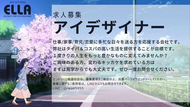 職種/仕事内容 | 仕事内容 2024年8月にOPEN予定★オープニングスタッフとして一緒にお店を盛り上げてくれるスタッフを大募集! 新しいチャレンジを全力応援! 面接時にプレゼントもありますので、将来の展望やどんなスタッフになりたいかなど、気軽にあなたのことを話してくださいね! 【サロンについて】 ”仕事や恋愛、家事・育児とバタバタ忙しい毎日を送る方を応援したい”そんなサロンを目標としています! 好きなことを仕事にして効率よく稼げ、私生活の時間も楽しめる タイムパフォーマンス&コストパフォーマンスが最高な環境で一度きりの人生をより豊かにしませんか♪ 面接に来て下さった方にはOPENまでの期間限定でサロンヘアトリートメントをプレゼントします★ 【お任せしたいお仕事】 まつ毛エクステやまつ毛パーマを中心としたアイラッシュ施術業務をお任せします。 アイラッシュに興味を持っているけど、まだ経験がないという方にも施術を安心して受けてもらえるような カウンセリングや情報の発信、施術をしていただきます。 アイラッシュだけではなく、同じ空間でパーソナルカラー診断やネイルといった連動性がある事業も展開します。 よりお客さま個人に合わせた提案やお悩みの解決ができるようなお店を作っていきたいと思っています。 憧れやコンプレックスなどの悩みを持つ方の相談所であることを目標に、お客さまの人生がもっと楽しく明るくなるお手伝いを親身にさせてもらっています。 居心地が良いサロン空間と接客。”なりたい”を叶える技術をアピールして多忙な日々を過ごす方のオアシスになれるようなお店作りをしていきます。 【入社後の成長について】 キャリアイメージとしても入社から1年で店舗責任者を目指せるキャリアアップ制度をご用意! 「なかなか今の環境だと責任者を目指せない・・・」「もっと上を目指して頑張りたい!」 そんな方にピッタリの環境ですよ! もちろん一人ひとりの描いている成長速度に合わせて支援! 研修制度もあり、必要な各技術ごとにマニュアルを基にした技術チェックを行います!(チェックは空き時間) チェックした技能の習熟度に応じて歴の長いスタッフから改善に向けた指導を受けられます! あなたの一人前までのキャリアを全力でサポートします! 【お子さんのいらっしゃる方へ】 「お子さんの急な体調不良でどうしても職場で面倒を見たい」 そんなときもあると思います。 その場合控室の準備もありますので、お客様のご迷惑にならない範囲で一緒に過ごしていただけます。 家庭があっての仕事だと思っておりますので急なご事情など気軽に相談してくださいね! アイデザイナー歴1年以上ある方歓迎♪経験を活かしてオープニングスタッフとして働きませんか? |