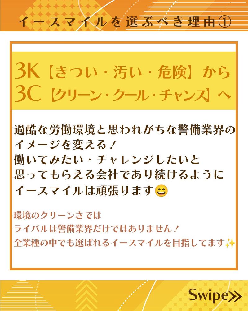 職種/仕事内容 | 仕事内容 3Kから、3Cへ 古い3Kイメージ(きつい・汚い・危険)を、3C=Clean/Cool/Changeで更新。未経験でも安心して続けられ、誇りを持てる働き方へ。 Clean|きれい・クリーン ・清潔な制服・装備を貸与、破損や消耗は適宜交換 ・ハラスメント防止・法令順守・適正休憩と無理のないシフト ・暑寒対策(空調服・防寒具等)と安全備品の標準装備 ・勤怠・申請はスマホで完結、残業の見える化と抑制 Cool|かっこいい・プロらしさ ・所作・合図・声かけまでトレーニング、接遇も強化 ・機能的で端正な制服、資格ワッペンで“見せる”プロへ ・「見られる仕事」から「魅せる仕事」へ Change|変える・変わる ・新任→現任→資格取得の段階教育、受験費用サポート ・改善提案は運用に反映、採用分は評価加点 ・評価×手当×キャリアパス(サブリーダー→リーダー→マイスター→グランドマイスター) ・DX(勤怠・連絡・マニュアル共有のデジタル化)で“古い慣習”を更新 「3Cで働く」=清潔で、公正で、成長できる。 イースマイルが選ばれる理由 1.福利厚生:系列店で使える飲食券3万円/月(規定あり)、社用車/バイク・携帯貸与可 2.教育体制:法定研修+ビジネスマナー研修、ホスピタリティ研修やOJT、現任教育で、未経験からプロへ 3.働きやすさ:残業ほぼなし(目安:月5h)、日勤メイン、直行直帰OK 4.やりがい:地域の安全と運営を支える、感謝される仕事 5.キャリア:評価制度が充実、アルバイトからでも管理職を目指せるキャリアパスも。資格は給与に直結 6.デジタル化:スマホで出退勤・申請、ペーパーレス日報で負担軽減 キャリアと将来の安心 ・昇格が見える:サブリーダー → リーダー → マイスター → グランドマイスター/隊長・管制・教育・営業へ ・「上を目指せる」少数精鋭:努力と成果がダイレクトに評価・待遇へ ・独立、FC(構想):一定の評価・実績を満たした方は、独立支援/業務委託(パートナー)の選択肢もあり将来独立も 【お任せする主な業務】 ◇国分町店舗の安全管理 店舗出入口での入退出管理や監視、見守りなどのお仕事です。 やりがいポイント 多くの人が安全に楽しい時間を過ごせるよう、イベントの成功を陰で支える重要な役割を担います。 チームワークを活かした業務の魅力も感じられます。 私たちは「何もなくて当たり前」の警備業務に誇りを持ち、無事故無災害という最高の結果で、お客様と地域社会に貢献しています。 あなたの“安全を守る力”を、地域社会の安心に変えてみませんか? 少しでも気になったら、1時間の職場体験へ。現場の雰囲気や先輩の声を直接確認できます。 交通費は当社負担。未経験も経験者も、“安心して一段上のキャリア”をここから。 |