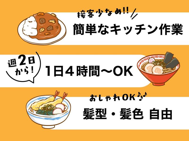職種/仕事内容 | 仕事内容 \土日祝は時給1,150円!/ ✅接客少なめ、簡単なキッチン作業がメイン ✅週1日~、1日4時間~勤務OK! ✅清潔感があればネイル・ピアスOK!髪型、髪色も自由! ー ラーメン・うどん・そば・カレーなどを提供する軽食店です。 【仕事内容はシンプル&簡単】 ・食券や料理の受け渡し ・簡単な調理 (麺を茹でる、盛り付けるなど) ・テーブル片付け ・食器洗い ・店内清掃 など ★食券制なのでレジなし ★難しい調理なし ★マニュアル完備 フードコートのようなイメージで、未経験でもすぐ覚えられます◎ 飲食バイトが初めての学生さんも安心! ー ビックマーチ真岡店に併設されているので、遊技の合間に来店されるお客様もいらっしゃいます。 土日はほどよく忙しくて時間があっという間! ピークは14~15時頃。 チームで声を掛け合いながら進めるので、達成感もあります! 夕方以降は比較的落ち着いた雰囲気。 メリハリのある働き方ができます。 ー |