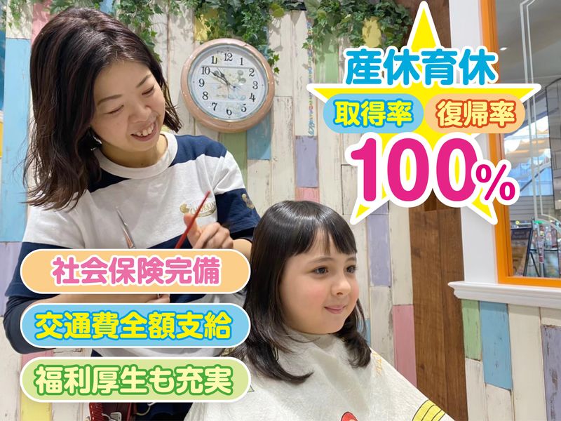 職種/仕事内容 | 仕事内容 お客様は0歳~小学生までの子ども達。 カットが中心、 シャンプー時間も大人と比べて短いため、 手荒れの心配もほとんどありません。 ただヘアカットする…だけでなく、 お客様である子どもたちに 楽しく安心安全に美容室を過ごしてもらえるよう心がけ、 ご家族の思い出の1ページになるような接客をしています。 また、私たちはお客様だけでなく、 一緒に働く「仲間」にも思いやりを大切にする職場です。 数字や指名争いではなく、 チームワークと信頼を重視した働き方を大切にしています。 練習時間は、 お持ちのスキルに合わせて キッズカットのノウハウや接客方法を、 営業時間内に丁寧に教えています。 子育て中のスタッフも多数在籍! 男性スタイリストも活躍中! ◎サロン見学可 ◎条件相談可 ◎ただお話し聞いてみるだけでもOK |