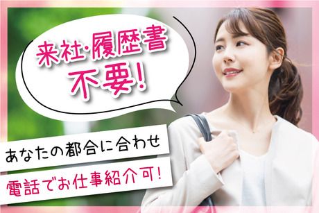 職種/仕事内容 | 仕事内容 ◆自動車整備会社での事務WORK <具体的には…> ・電話対応 ・パソコンでのデータ入力 ・書類作成 など 事務業務をお任せします。 ◆Excelなどパソコンの基本操作ができればOK! 「まったくの未経験」 「事務経験が浅い」 「ブランクがある」 という方でも問題なし! 難しい作業はありませんので、スグに覚えていただけますよ! 周りにいる先輩スタッフがしっかり研修・サポートするので 困ったことがあればスグに相談できる環境です◎ ■20代~40代の女性スタッフ活躍中!週5日の安定勤務になります フリーターさんはもちろん、 子育てがひと段落した方や家事育児と両立して頑張る方が多数活躍中! 家庭と両立しやすいシフトで無理なく働くことができます。 「事務の仕事を始めてみたい」 「昔、事務の仕事をやっていた」など 応募のきっかけは何でもOK! レギュラー勤務で安定した収入を稼ぎたい方にオススメですよ! ◆来社&履歴書不要!電話でお仕事のご紹介が可能です。 今回募集しているお仕事に関して もっと詳しく説明してほしいと思われた方には、お電話でしっかり説明します。 来社&履歴書不要でお仕事のご案内が可能なので 仕事が休みの日や仕事終わりなど、 あなたの都合のよいタイミングで連絡いただければ希望のお仕事を案内しますので まずはご応募ください。 |