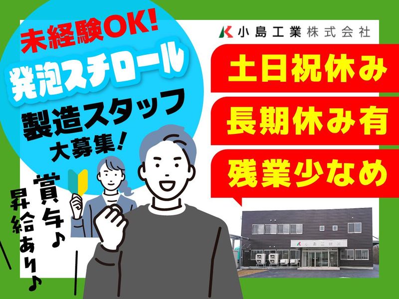 職種/仕事内容 | 仕事内容 < POINT✨ > ✅<未経験OK>しっかりと研修があります◎ ✅<残業少なめ>残業月平均10時間程度◎ ✅<定時は17時>プライベート充実です◎ ✅<土日祝休み>無理なく長く働けますよ◎ ✅安定した企業で長く働きたい方にオススメ ✅20代~45歳の<男性スタッフ活躍中!> ・・・・・・・・・・・・・・・・・・・・・・・・・・・・・・・・・・・・・・・・ < 当社について✨ > 大正13年創業、発泡スチロール製品の 製造・販売・リサイクルを行っている 「小島工業株式会社」です 今回、 福島県河沼郡にある坂本工場で、 製造管理部門の体制強化と スタッフ欠員補充のため 「製造スタッフ」を1名募集します! やりがいあるお仕事で働きませんか? ※年齢45歳以下の募集(キャリア形成) ・・・・・・・・・・・・・・・・・・・・・・・・・・・・・・・・・・・・・・・・ < 仕事内容✨ > 発泡スチロール製品の 製造業務をお願いします テレビ、洗濯機、冷蔵庫といった 家電製品の緩衝材や、 鮮魚コーナーへ行くとよく置いてある 発泡スチロールの箱。 そういったものを製造していただきます! □ 生産目標に対しての 進歩確認と生産状況確認・処理 □ 設備のメンテナンス及び調整 □ 生産指標のデータ分析と対策発案・実施 ・・・・・・・・・・・・・・・・・・・・・・・・・・・・・・・・・・・・・・・・ < 1日の流れ✨ > 08:00 出社、朝礼、設備点検・立上げ 09:00 製造開始、生産状況の確認と 問題点の対策 12:00 昼休憩 13:00 設備メンテナンス・調整作業 15:00 生産指標のデータ入力・翌日準備 17:00 退社/お疲れ様でした! ・・・・・・・・・・・・・・・・・・・・・・・・・・・・・・・・・・・・・・・・ < 職場の雰囲気✨ > 当社は上下関係にとらわれず、 フレンドリーで話しやすい職場環境です! チームワークを大切に 協力しながら働いています◎ □ 男女比:男性6割・女性4割 □ 平均年齢:約45歳 ・・・・・・・・・・・・・・・・・・・・・・・・・・・・・・・・・・・・・・・・ < 当社のHPもご覧ください✨ > https://kojima-kogyou.com/ ・・・・・・・・・・・・・・・・・・・・・・・・・・・・・・・・・・・・・・・・ |