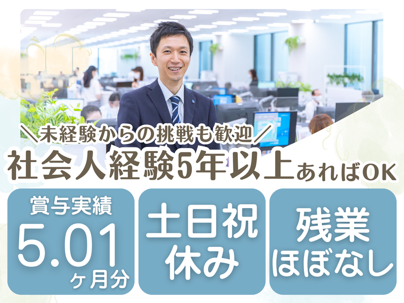 対象となる方 | 求めている人材 ✅社会人経験5年以上(職種・業界不問) ✅要普通自動車免許(AT限定可) ⏩営業経験者は優遇 特に、新規開拓営業で実績を上げてきた方、 法人向け営業経験者やテレアポ経験者は スキルを存分に活かせます! ⏩熱意のある営業未経験者も歓迎 「営業の世界で力を発揮したい!」と いう方は歓迎します。 <こんな方を歓迎します> ◎結果が出るまで、粘り強くやり切れる方 ◎成長意欲の高い方 ◎コンプライアンスを重視できる方 ――・――・――・――・――・――・― <先輩職員の転職エピソード> ■前職:出版社の広告営業(約5年) ◆入団の決め手  ̄ ̄ ̄ ̄ ̄ ̄ ̄ ̄ ✅成果に応じたインセンティブ制度や 適正な評価制度があること。 ◆入団してよかった点  ̄ ̄ ̄ ̄ ̄ ̄ ̄ ̄ ̄ ̄ ̄ ✅営業へのフォロー体制がとても手厚く、 自分の活動に専念できる環境があります。 ✅私自身異業種からの転職でしたが、 頑張りが評価され入団から8年で、 "飛び級”で課長に抜擢されました。 ✅残業がほとんどないため、 家族と一緒にいる時間が増えました。 ◆職場の雰囲気  ̄ ̄ ̄ ̄ ̄ ̄ ̄ ̄ ✅入団前は堅い印象を持っていましたが、 実際はとても穏やかな雰囲気です。 同僚はもちろん、上司にも気軽に 相談できる環境です! ――・――・――・――・――・――・― |