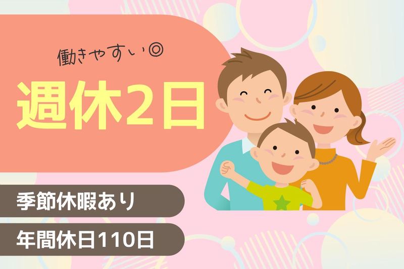 休日休暇 | 休日休暇 完全週休2日/日曜+他 *夏季休暇 *冬期休暇 *リフレッシュ休暇(5年毎5日間) *年間休日110日 |