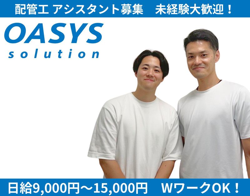 職種/仕事内容 | 仕事内容 \案件増加に伴い事業拡大の為の増員募集/ 株式会社オアシスソリューションでは、配管工事現場での作業スタッフを増員募集しております! 営業さんが獲得した給水工事案件の現場に行き、先輩スタッフのアシスタント業務からスタートして頂きます◎ 〈具体的な業務内容〉 マンションの各玄関脇にあるパイプシャフト内の配管改修・洗浄の社員補助業務。 作業に慣れたら実際の施工業務も担当して頂きます! 共用廊下で作業を行うので雨に濡れたり泥塗れになる心配は基本ありません◎ 勤務先は主に仙台市内をお任せします!(現場による) ※福島・山形・岩手の出張有/出張応相談 (朝食付ビジネスホテル宿泊) ■アピールポイント  ̄ ̄ ̄ ̄ ̄ ̄ ̄ ̄ ̄ ̄ ̄ ̄ ̄ ̄ ̄ ̄ ̄ ̄ *WワークOK!掛け持ち先との調整も柔軟に対応します! *未経験からスタートOK! *希望があれば正社員登用も可! *先輩スタッフも若手が多いです! ■一日のスケジュールイメージ  ̄ ̄ ̄ ̄ ̄ ̄ ̄ ̄ ̄ ̄ ̄ ̄ ̄ ̄ ̄ ̄ ̄ ̄ 9:00 現場到着・作業開始 ↓ 10:30 午前中の休憩時間(10分~15分) ↓ 10:45 作業再開 ↓ 13:00 お昼休憩(60分) ↓ 14:00 作業再開 ↓ 15:30 午後の休憩(10分~15分) ↓ 15:45 作業再開 ↓ 18:00 作業終了・帰社 工程が決まった案件に対して、シフトに入れる日程を相談しながら勤務日を決めていきます♪ |