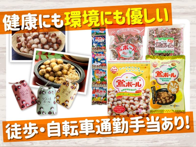 職種/仕事内容 | 仕事内容 ・簡単な機械操作 ・調味料配合/投入 90年以上続くあの有名なロングセラー米菓などの生産工場でのお仕事です。 一度はお店やテレビ、店頭で目にした覚えのある商品もあるのではないでしょうか!? 【植垣米菓のこだわり】 安心・安全な有機米菓を作っています。弊社の商品を手にする方だけでなく、地球にも優しい活動に励んでいます。 原料と水にこだわっているので、お客様に身体にやさしい、自然の味をお届け。 海外でも健康で安全な食品として、愛されています。 今回は、そんな優しいお菓子の製造工場で一緒に働くスタッフの募集です! フルタイムの勤務ですので、しっかり働きたい!がっつり稼ぎたい!という方はぜひお気軽にご応募ください! ハローワークでお仕事お探し中の方もOK! 【このような方を応援します】 ・仕事がトレーニングに!? 身体を動かすことのある仕事です。 おもちを運んで頂くので、仕事がちょっとした筋トレになります。 ・製造経験なし 心配ありません!力仕事ばかりではなく、製造補助と美味しいお菓子をお客様にお届け するまでの重要な工程に携われます。もち米の製餅、成型、裁断、乾燥などをお任せ。 シンプルな作業が多く、未経験の方でもすぐに活躍できます!! ・健康の為にも身体を動かしながらの仕事 おもちを触ったり、動かしてもらうので身体を動かすことが多いお仕事です。 また、徒歩/自転車通勤手当あり! 健康の為にも身体を動かす機会作りもできますね! もちろん、負担のないように配慮します。 お客様や地球だけでなく、従業員にも優しい会社です。 |