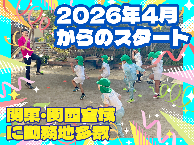 職種/仕事内容 | 仕事内容 ECCが契約している 幼稚園・保育園での 幼児を対象としたスポーツレッスンです。 レッスンは1 人で担当して頂きますが、 本部のサポートが充実しているから 指導経験がなくても安心! <具体的には> ・かけっこレッスン指導 速く走るための技術や運動することの 楽しさを子どもたちに伝えることを 中心としたレッスンです。 教育者としての基本的な挨拶など、 しつけ面での教育もお願いします。 ・施設や保護者との関係づくり 勤務地となる園の訪問時に、園の職員さんや 保護者の方とコミュニケーションを取り、 信頼関係の構築です。折衝能力も身に付きます。 ・報告業務 レッスンや生徒の状況報告です。 事務処理での業務になります。 ■アピールポイント■ 関東・関西・愛知エリアに勤務地多数! 平日週1 コマから勤務可能です◎ スポーツが好きな方、体を動かすのが好きな方、 幼児教育に興味がある方…など大歓迎! 2026年4 月に開始予定! (一部、年度途中に開校の勤務地もあります!) レッスン担当までに研修2〜3 回と開始後のサポートもあります。 ★勤務地は希望エリア応相談! 基本的にお住まいの近く(通勤1時間前後)を想定しております。 ■新鮮で充実した毎日を送れる■ 幼稚園・保育園でECC オリジナルの かけっこ指導を通じて、子どもの成長を感じる 喜び・充実感が強いお仕事です。 同時に指導者としての自分の成長も感じられます。 スポーツ指導の経験がなくても、ノウハウが詰まった ECC の研修メソッドでしっかりサポートします! 日本語でのレッスンなので、英会話力は必要ありません。 |