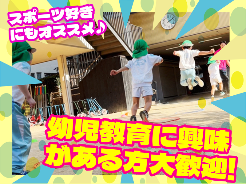 対象となる方 | 求めている人材 短距離走が得意な方歓迎 ※目安:50m 走(男性:7 秒台、女性:8 秒台)以内 ・陸上競技経験者歓迎 ・スポーツ指導経験者歓迎 ・大会実績不問 <こんな方歓迎します!> ★子どもが好き、スポーツが好き ★手本を見せながら指導できる ★個人の発育や発達に適した運動指導ができる ★子どもに丁寧なコミュニケーションを取り、成長をサポートできる ★教育・保育を含めた「子育て」に興味・関心・理解がある |