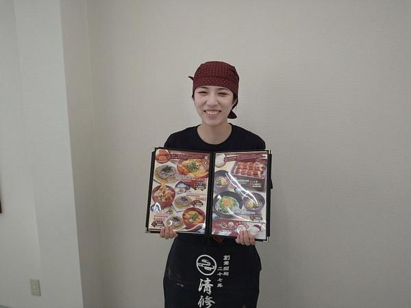 職種/仕事内容 | 仕事内容 ー【おすすめポイント】ー ①1日4時間~、週2日~勤務OK! 平日のみなども可能で、 シフトの融通◎で働きやすいと好評です♪ ②自慢の本格手打ちそば・うどんを いつでも70%オフで食べられます! ③落ち着いた雰囲気のお客様がほとんどなので、 居酒屋のようにバタバタすること無く、 安心して業務に取り組めます◎ ④イオンなどの商業施設内の店舗が多く、 帰りに夕飯の買い物なども出来て便利♪ ー 【仕事内容】 本格手打ちそば・うどん店の ホール・キッチン業務をお任せします。 <具体的に> オーダー ドリンク・料理提供 薬味の準備 清掃 など  ̄ ̄ ̄ ̄ ̄ ̄ ̄ ̄ ̄ ̄ ̄ ̄ ̄ ★ 清修庵のいいところ ★ _____________ **未経験歓迎** 飲食未経験・パートデビューも大歓迎! お仕事の流れなど、研修で丁寧にお教えしますのでご安心ください◎ 「学校・部活終わりから働きたい」 「お小遣い稼ぎのために!」 そんなあなたにピッタリのお仕事です♪ **柔軟なシフト制** 週2日~、1日4h~勤務OK! 「来週からテストが始まるので…」 「この日は友人と旅行の予定で…」 などにも柔軟に対応します◎ **食事補助あり** 当店自慢の本格手打ちそば・うどんを いつでも70%オフで食べられます! 「そば・うどんが好き」 「美味しいものを食べたい」 そんな人にもオススメです☆ ★ 採用担当より ★ スタッフさんは主婦さんや大学生さんを中心に 10代〜50代まで幅広い世代が活躍中です! お客様の前では、明るい対応で、真面目に。 準備中や休憩中はみんなでワイワイ楽しく☆ ここで出会って仲良くなったというスタッフも、 辞めてからもお店に来てくれる元スタッフも多数。 これから新しく出会うあなたにも、 少しでも居心地が良かったと感じてくれるよう、 気持ちよく過ごせる環境を目指しています! |
