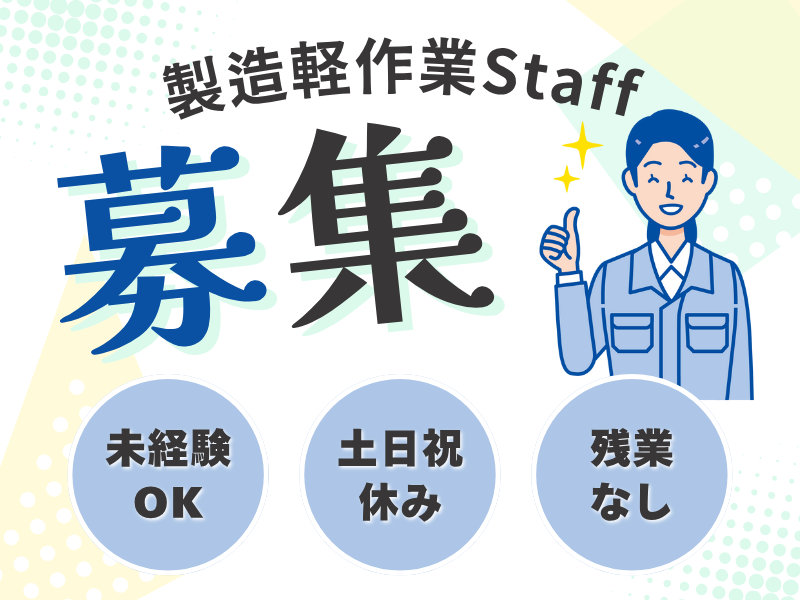 職種/仕事内容 | 仕事の内容 【おすすめポイント】 ✔ 土日祝休み&残業なし! ✔ 未経験・ブランクOK!かんたん軽作業◎ ✔ うれしい週払いにも対応♪ ///////////////////// 【お仕事内容】 \樹脂製品(プラスチック)の製造軽作業/ 機械で加工した製品の仕上げをお任せします♪ ▼具体的には▼ ・ニッパーやカッターで形を整える作業 ・汚れをふき取って仕上げる作業 など (作業マニュアル完備!) 扱うのは手のひらサイズの軽い製品が中心。 ときには少し大きめの製品もありますが、 プラスチック素材なので力仕事はほとんどありません。 *金属加工のように油汚れや金属粉が出ないため、工場内はクリーンで清潔。 *においも少なく、空調の効いた快適な環境で作業できます!  ̄ ̄ ̄ ̄ ̄ ̄ ̄ ̄ ̄ ̄ ̄ ̄ ̄ ̄ ̄ 【職場の雰囲気】 20〜40代のスタッフが中心に活躍中! 配属先は10名ほどの少人数チームなので、 落ち着いた雰囲気でモクモク作業に集中できます◎ ///////////////////// |