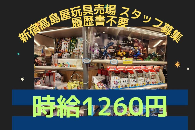 職種/仕事内容 | 仕事内容 新宿髙島屋店にある玩具SHOPでの販売・接客をお任せします。 ◆具体的には◆ ✅玩具売場での販売 ✅接客対応 ✅商品発注 ✅納品片し 及び 商品陳列など 「遊びの中にある学び」に着目し、玩具を通して子どもたちの成長につながるサポートを大切にしています。 来店したお客様への商品のご案内など接客業務の他、商品発注や陳列などもお任せします! ◆接客マナーも学べる職場◆ 百貨店ブランドに即した丁寧な接客対応スキルが身につきます。 就・転職時にも役立つ接客力・コミュニケーション力を得られます。 ◆バイト後の楽しみも一杯!◆ 新宿にはお楽しみスポット多数! 映画館、カフェ、アパレル、書店など数多くのお店があるので、バイト後に遊ぶ・学ぶ・買い物が全部できます。 バイト前後の時間を「好きなこと」に使える街です。効率的な時間の使い方が可能です! |