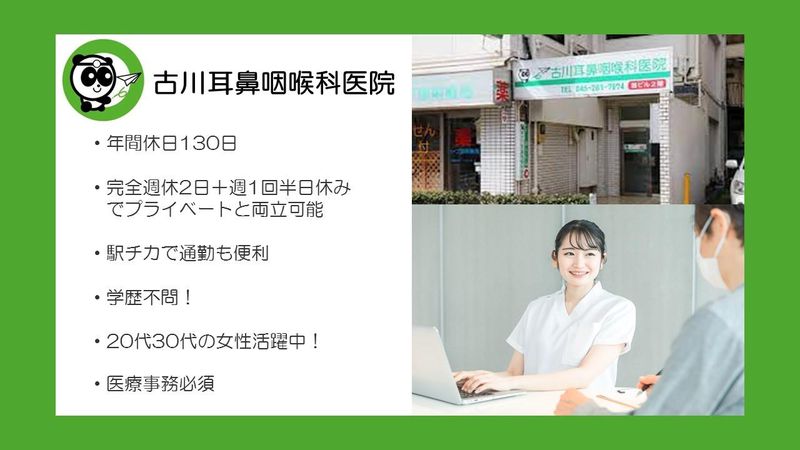 勤務地 | 古川耳鼻咽喉科医院 神奈川県横浜市中区若葉町2-24-5 松井ビル2階 |