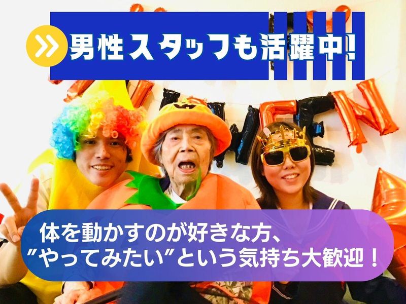 対象となる方 | 求めている人材 ⭐\Z世代大活躍!/⭐ ✨男性スタッフ多数在籍♪✨ ✅学歴不問 ✅経験不問 ✅男性スタッフ多数活躍中♪ ✅無資格OK ✅未経験スタート大歓迎! ・✦✨当てはまる方大歓迎✨✦・ ⏩体を動かすのが好きな方 ⏩筋トレが好きな方 ⏩”やってみたい”という気持ちがある方 「おじいちゃん、おばあちゃんが好き!」 「資格を取りたい!」 など志望理由は何でもOK |
