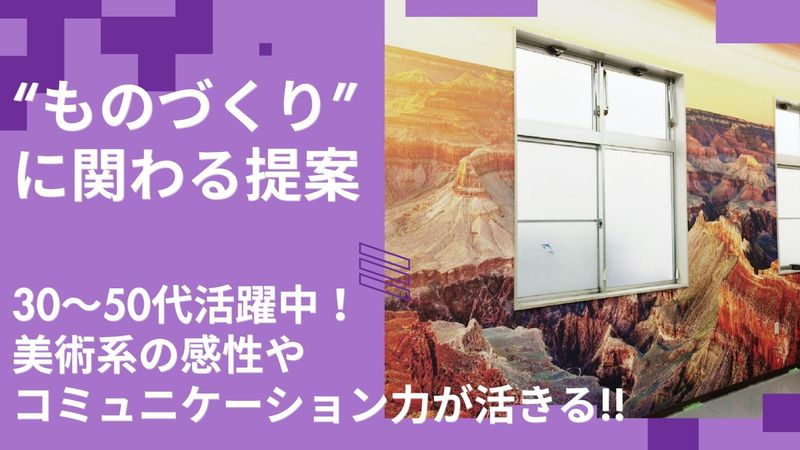 職種/仕事内容 | 仕事内容 \“営業×クリエイティブ”の新しい形/ あなたの感性と人柄が、 モノづくりの現場に彩りを添える。 営業といえば、数字を追う イメージが強いかもしれません。 でも当社の営業職はちょっと違います。 お客様とじっくり関係性を築きながら、 製品や提案に「あなたらしさ」を込める、 そんな働き方を目指しています。 ✨ 美術系・デザイン系出身の先輩も活躍中! ✨ IllustratorやPhotoshopの知識を、 提案資料などで活かせます。 ✦仕事内容✦  ̄ ̄V ̄ ̄ ̄ ̄ ̄ ̄ あなたにお任せしたいのは、 既存顧客へのフォロー営業や、 新規のお客様へのご提案、 そして受注後の進行管理や 納品までのやりとりなど。 パンフレットやPOP、展示会ブースなど、 “ものづくり”に関わる 様々な販促物の提案を行います。 「この形がいいかも」 「この色で統一したら?」など、 あなたのアイデアが、 カタチになる仕事です! 制作部門や製造スタッフと連携しながら、 一緒にお客様の理想を形にしていく―― そんな「モノを売る」だけではない営業職です。 ※お客様は、看板屋さん、広告代理店、 イベント企画会社、施工管理会社など、 “モノづくり”や“空間づくり” に携わる法人がメイン。 営業スタイルに細かいルールはなく、 メール・テレアポ・飛び込みなど、 自分に合った方法で アプローチできるのも魅力のひとつです。 ✦入社後はこんなステップ✦  ̄ ̄V ̄ ̄ ̄ ̄ ̄ ̄ ̄ ̄ ̄ ̄ ̄ 最初は先輩同行や、 社内での製品知識習得から。 「この商品、こういう風に作ってるんだ!」 という発見が、 提案にも自然と活きてきます。 “提案する営業”になるには、 まず“知ること”から。 焦らず着実に、 一歩ずつ成長していきましょう。 ✦会社の魅力・働きやすさ✦  ̄ ̄V ̄ ̄ ̄ ̄ ̄ ̄ ̄ ̄ ̄ ̄ ̄ 「ものづくりが好き」 「人と話すのも好き」 ──そんな方にピッタリの営業職です。 お客様と信頼関係を築きながら、 製品づくりにも関われる、 ちょっと特別な営業のお仕事。 営業職でも、 IllustratorやPhotoshopを使った提案や、 ものづくりへの関心・センス が活かせる環境です。 土日祝休み・転勤なし・待遇充実で、 安定して長く働ける 職場づくりにも注力しています。 ■ 具体的な魅力ポイント ✅ 美術系スキルや感性が活かせる営業職 Illustrator・Photoshop使用の機会あり ✅ “売る”より“寄り添う”営業スタイル 関係構築がメインでノルマもありません ✅ 正社員採用&設立40年以上の安定企業 腰を据えて長く活躍できる環境 ✅ 土日休みでプライベートも大切にできる 年間休日も多めで予定が立てやすい ✅ 穏やかで落ち着いた職場の雰囲気 30~50代中心のチーム体制 ✅ 転勤なし!地元で働きたい方にも◎ 生活スタイルに合わせて働けます ご興味を持っていただけた方は、 ぜひご応募ください。 あなたの“得意”が活かせる職場で、 お会いできるのを楽しみにしています! |