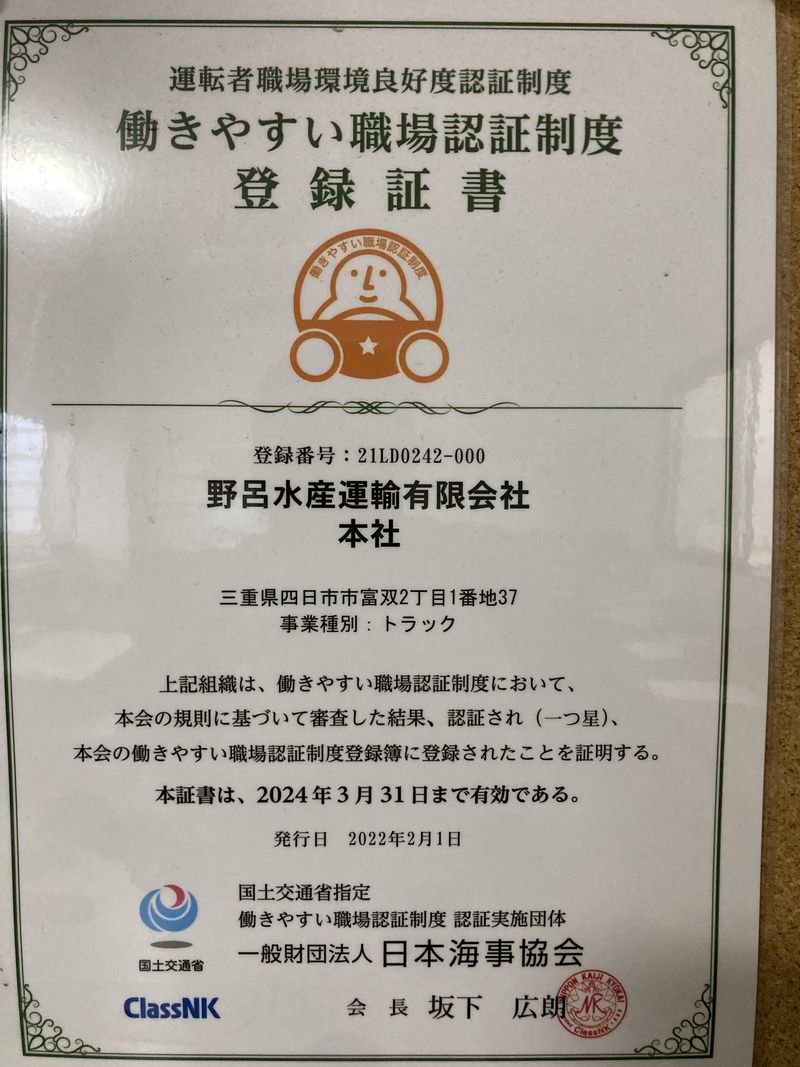 勤務地 | 野呂水産運輸有限会社 510-8005三重県四日市市富双2−1−37 |