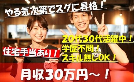 職種/仕事内容 | 仕事内容 スキル無しOK!学歴不問!アルバイトを含めて調理や接客の経験のある方は月給30万円以上の提示も! おすすめ屋は、食べ飲み放題を2000円で提供する新進気鋭の居酒屋チェーンです! 売上の90%が予約で埋まり、リピート率は驚異の30%! 【おすすめ屋のここがオススメ】 (1)充実した給与・待遇 ・月給35万円以上でスタート!※飲食業未経験の方は月収30万円以上でのスタート! ・嬉しい住宅手当あり! ・昇給は年2回! ・賞与も勿論あり! ・社割で料理も安く食べられる! (2)働きやすさ・自分らしさの実現! ・土日祝の休みも選択可能 ・残業は月10時間以内 ・完全週休2日制 ⇒予約は本社が一元管理、モバイルオーダー等の導入もあるため店舗の負担も少なく ホワイトな働き方が実現! ・転勤無し→希望次第で転勤を含む異動も可能です! ・副業もOK! ・髪色、髪型、ヒゲ、ネイル自由でお洒落も楽しめる! (3)キャリアパスも充実! ・明確な昇格基準もあり、1年目で店長に昇格する場合もございます! 〈年収例〉 入社1年目24歳店長 年収430万円 入社3年目26歳マネージャー年収520万円 ・店長⇒エリアマネージャーのみでなく、マーケティング部等、屋社業務へのチャレンジも可能です! あなたの希望に合わせたキャリアパスを準備致します! ・独立支援制度あり(不動産調査・物件選定までサポート) (4)経験のない方も心配ございません! 最初は先輩スタッフがマンツーマンでサポート。 マニュアル動画などの研修ツールも充実しているので安心です。 いきなり難しいことはお願いしません。 少しずつ、あなたのペースで覚えていきましょう! (5)その他のオススメ! ・売上ノルマ一切なし!プレッシャーなく働けます! ・スタッフ同士の仲が良く、アットホームな職場です! 【仕事内容】 ・お席へのご案内 ・料理、ドリンクの提供 ・テーブルの片付け ・お会計 ※注文はモバイルオーダーのためスムーズです! お仕事に慣れてきたら ・アルバイトスタッフの教育 ・シフト管理 等の店舗管理業務もお任せ致します! いきなり難しいお仕事は任せません。 出来る事を徐々に増やしていきましょう! 私たちは、働いて下さる"社員の皆様"を何よりも大切にしています。 スタッフ一人ひとりの声に耳を傾け、働きやすい環境づくりを日々心がけています。 「ここで働けてよかった」と思える職場を一緒に作っていきましょう。 あなたのご応募をお待ちしております。 |