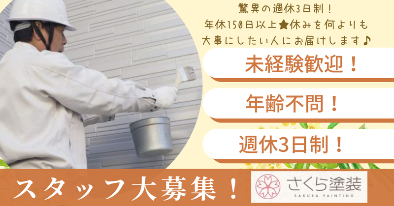 職種/仕事内容 | 仕事内容 ⭐「塗る」だけじゃない。 暮らしと信頼をつくる仕事です。 外壁や屋根の塗装―― それは、ただ色を塗る作業ではありません。 日々の雨風、紫外線、暑さ・寒さから 建物を守る「盾」をつくる仕事。 そして、住む人の毎日を少しでも快適に するための「気配り」の仕事です。 私たち株式会社さくら塗装は、 熊本に根ざした塗装会社として、 地域の皆さまの暮らしを支えるために、 **“まっすぐで丁寧な仕事”**を続けてきました。 ◇◆┈┈┈┈┈┈┈┈┈┈┈┈┈┈┈┈◆◇ <具体的な仕事内容> まずは、カンタンな作業からスタートします! たとえば―― ▶塗料をバケツに入れて、よく混ぜる ☞絵の具みたいだけど、建物のための特別な塗料です! ▶ペンキが飛ばないよう、ビニールで周りをカバーする ☞これを「養生(ようじょう)」っていいます。大事な下準備! ▶ローラーやハケで、壁に色をつけていく ☞いきなり全部はやらないので安心。まずは端っこを一緒に塗ってみよう! ▶乾いたかチェックして、仕上がりを確認する ☞ムラや塗り残しがないか、先輩と一緒に確認! 道具の名前ややり方は、先輩がゼロから教えます。 はじめは見てるだけでも大丈夫。 少しずつ、 自分の手でできることが増えていく―― その楽しさを、ぜひ味わってほしいと思っています。 ◇◆┈┈┈┈┈┈┈┈┈┈┈┈┈┈┈┈◆◇ <仕事の流れ> ▼工事スタート! 作業計画(スケジュール)を確認して工事スタート! ▼近隣の方々にあいさつ ご近所の方に「音が出ますよ」とごあいさつ。気配りも職人のしごと! ▼足場をつくる 高いところを安全に作業するために、鉄のパイプで足場を組みます。 ▼下地処理と養生(ようじょう) 壁をキレイにしたり、サビやヒビを直したりして準備! ペンキがついてはいけないところ(窓や車など)はビニールでカバーします。 ▼塗装スタート! 「下塗り → 中塗り → 上塗り」の3回塗りが基本! ただ色をつけるだけじゃなく、家を雨や風、太陽から守る強い壁に変えていきます。 ▼足場をはずす 全部塗り終わったら、足場を解体して、まわりをしっかりお掃除! ▼完成チェック! 仕上がりに問題がないか、お客様といっしょにチェック。 塗りムラがあれば、しっかり手直しします。 ▼完成&引き渡し! お客様に「ありがとうございました!」とお引き渡し。 ▼アフターサービス! あとから不具合が出ていないかも、きちんと確認。 それが、ずっと安心できる仕事の証なんです。 ◇◆┈┈┈┈┈┈┈┈┈┈┈┈┈┈┈┈◆◇ ✅どんな人が向いてるの? ・やる気だけはある!という人 ・モノづくりが好きな人 ・チームで協力するのが好きな人 年齢・経験・学歴、ぜんぶ問いません。 ブランクあり・異業種からの転職も大歓迎! 「全くの未経験」から始めた人が、 今は立派な職人として活躍しています! ✅未経験でも、安心してスタートできます。 「ペンキを塗ったこともないけど…」 「建設の仕事は初めてで不安…」 大丈夫。 道具の名前も、塗料の種類も、イチから先輩が丁寧に教えます。 最初は、ビニール貼りや道具の準備など簡単な作業からスタート。 慣れてきたら、ローラーでの塗装や補修作業にも挑戦。 将来は**国家資格「一級塗装技能士」**を目指すこともできます。 ✅応募するか迷ってるあなたへ 「正直、やれるか不安…」 「建設って怖そうなイメージある…」 そんな人にこそ来てほしい。 この仕事は、始めるとどんどん自分に自信がつきます。 作業着が似合うようになる。 道具を使いこなせるようになる。 人から「頼りにされる」ようになる。 そして気づけば、「あの建物、自分が塗ったんだ」って胸を張れるようになります。 ◇◆┈┈┈┈┈┈┈┈┈┈┈┈┈┈┈┈◆◇ |