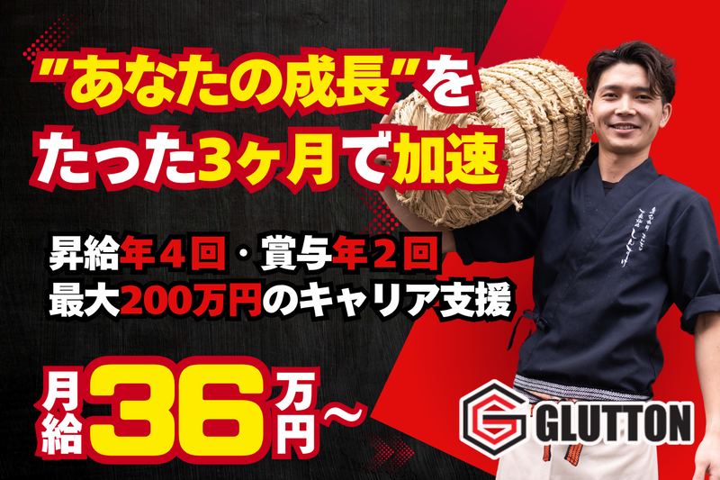 職種/仕事内容 | 仕事内容 ::::□::::■::::□::::■::::□::::■:::: あなたの「次のステージ」は、たった 3ヶ月後かもしれない。グラットンでは、 3ヶ月に1回、正社員の約27.7%が昇格。 チャンスは、年に4回訪れます。 “ゴチソウビジネス”で世界をHappyに。 “飲食で働くこと”を、もっとカッコよく。 食の力で人を笑顔にする。 その想いを、キャリアという形で 叶えていく。あなたの努力が最速で報われる 舞台、それがグラットンです。 ::::□::::■::::□::::■::::□::::■:::: 私たちグラットンは、 「食で人を幸せにする」を本気で追求する 外食企業です。飲食=ハードワークという イメージを変え、“働きがい”と “働きやすさ”が両立できる会社を 目指しています。 “食のソリューションカンパニー”として、 まだ地域にない業態を創り、広島を拠点に 全国・海外(マレーシア・韓国)へと展開。 FC・EC・食品事業など、多角的な挑戦で 新しい価値を届けています。 ::::□::::■::::□::::■::::□::::■:::: 広島県の外食企業で初となる 「働きがいのある会社ランキング」 2020年度ベストカンパニーを受賞しました! ::::□::::■::::□::::■::::□::::■:::: スタッフの働きがいが、会社の成長に つながると本気で考えています。 ✅賞与年2回 ✅年4回の昇給機会 ✅家族・子供・住宅・引越など各種手当 ✅最大200万円のキャリア支援etc... 働く環境も、どんどん進化させていくので、 あなたのご意見をお聞かせください! 【 仕事内容 】 店長候補として店舗運営に関わる すべてのことをお任せします! ▼接客などのホール業務 ▼スタッフの育成 ▼食材や備品の管理・発注 ▼その他マネジメント業務など まずは、スキルや経験に応じて始めて いきましょう!分からないことや不安な ことがあれば、なんでもお気軽に 相談してください。 慣れてきたら次第に、店長候補として マネジメント業務もお任せ! スタッフとコミュニケーションを とりながら、お店を盛り上げてください◎ ■□~ グラットンの魅力をご紹介~□■ ◇★学びが止まらない“成長環境”★◇ ≪育成インフラ「Gluttonアカデミー」≫ 社員一人ひとりのキャリアに合わせて、 年間を通して段階的に学べる教育体制を 整えています。単なる研修ではなく、 “成長が仕組み化”された学びの場です。 ❏幹部塾 └経営者視点を学び、店舗だけでなく 事業全体を見渡す力を養う。 ❏店長塾・店長育成塾 └人材育成・数値管理・リーダーシップを 実践的に習得。 ❏飲食MG塾 └ゲーム形式の経営シミュレーションで 利益構造を体感的に理解。 ❏ルーキー塾・ミライ塾 └新卒・若手層が業界の基礎と考え方を 体系的に学ぶプログラム。 さらに、「キャリチャレ補助金」制度では、 外部研修や資格取得にかかる費用を 会社が【年間最大200万円】サポート。 自ら挑戦する社員を後押しする 文化が根づいています。 ◇★努力は、3ヶ月でカタチになる★◇ ≪3ヶ月1回、正社員の約3割が出世する会社≫ 「年に一度」ではなく「四半期ごと」に 成果を見える化。努力をスピーディーに 反映する制度で、若手でもどんどん 上を目指せます。 ❏店長になれば、年収650万円も可能! └最短半年程度で店長になった方も! ❏年4回昇給チャンスあり! └平均約3万円月給アップ! 最大約5万円の月給アップも可能! ❏売上前年比126%・2019年比175%成長 └賞与支給額は昨年の1.6倍 挑戦を評価し、結果を還元する。それが 当社のカルチャーです。だからこそ、 定着率90.2%・平均勤続6.5年という数字を 実現しています。 ◇★事業スケールで磨く“現場×経営視点”★◇ ≪現場×マーケティングでつくる繁盛店運営≫ 店舗を「運営」ではなく「経営」として 考え、データと戦略をもとに成長させる 仕組みがあります。 ❏売上・リピート率・口コミを分析し、 PDCAを日常化 ❏Google・SNS・MEO施策など集客戦略を 自分たちで企画 ❏データ活用で感覚に頼らない判断が できる店長へ 店舗を“自分の会社”のように動かす。 それがグラットンの店長のスタイルです。 【 求職者の皆様へのメッセージ 】 「成長したい」「評価されたい」 「リーダーになりたい」 —その想い、グラットンなら3ヶ月で 形にできます。 年4回の昇給、挑戦を後押しする育成制度、 そして支え合う仲間たち。 “努力がちゃんと報われる環境”で、 次のステージへ最速で駆け 上がってください。 飲食を“仕事”ではなく“誇れるキャリア”に。 あなたの挑戦が、グラットンの未来を 動かします。 |