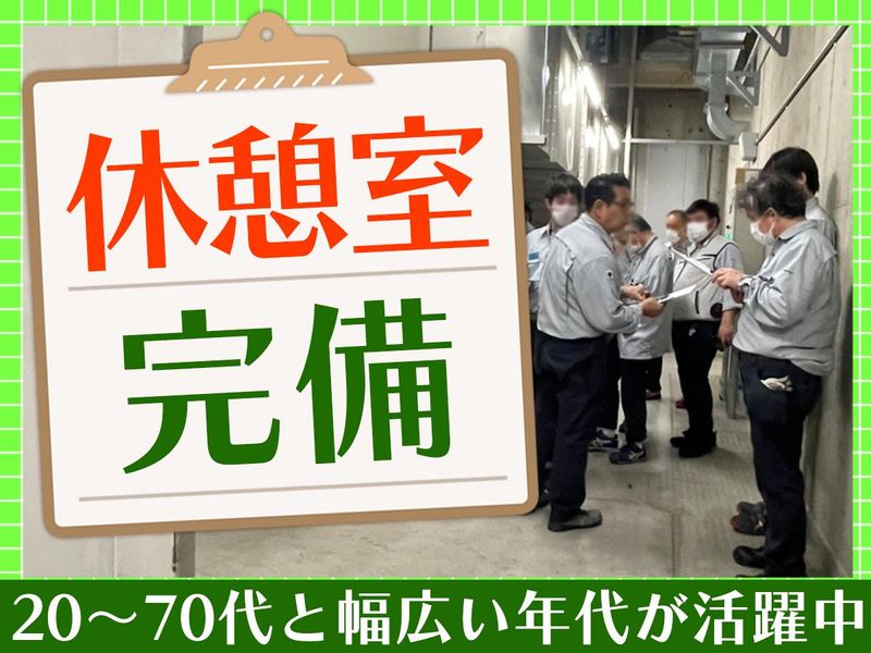 職場環境・雰囲気 | 職場環境 当現場では現在、20代~60代の15名の男性社員が活躍中! 20年以上活躍している社員や新卒で入社した社員もいます◎ コミュニケーションも取り易い環境なので、困ったときなどはスグに質問できて 未経験者、ブランクある方、実務経験が浅い方なども安心です♪ 喫煙所:喫煙所あり(屋外) |