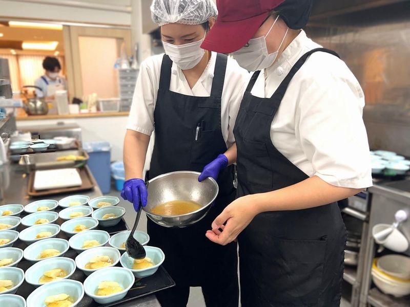 職種/仕事内容 | 仕事内容 【介護施設での食事提供業務】 1日3食、ご利用者様の好みに応じた和洋中の王道メニューを中心に、 管理栄養士が組み立てた献立を安全に調理・盛り付けし、提供する業務です。 行事食や誕生日の特別メニュー対応もあります。 【受託先:ライフコミューン登戸について】 2022年4月に施設リニューアルを行った居室数86の施設(介護付有料老人ホーム)です。 【採用の背景】 おかげ様で、弊社で担当させて頂く施設様が増加しており、 今後、さらに多くの受託施設様の獲得を目指す上で、 各施設の食堂を運営できるスタッフの育成が急務となっています。 働く全員が、よい環境・仕組みで働きつつ、食の現場で貢献していただける方を 広く募集します。 【詳しい業務内容】 施設内の厨房運営をお任せします。 ①食事を準備する業務 ・1食80~90人前程度の食事の準備をチームで分担して行います。 ・メニュー/食数が事前に決められている他、炊飯と規定通りのレシピで作る汁物以外は 全て完調品を温めるだけなので、調理自体の難易度は低いです。 ・朝食は毎日ご利用者様の好みによってチョイスできるように準備します。 ・行事食や誕生日特別メニューは完調品ではなく、オリジナルの調理になります。 特別な日の特別な料理を考えて調理していただきます。 ・食数が多いので、チームワークがこの仕事では重要になります。 ・食器の準備や食洗器を使った洗浄、片付けも行います。 ②現場を運営する業務 ・食材の発注や在庫管理 ・チーム作り(シフト作成、スタッフの採用や育成) ・クレンリネスの徹底(清掃だけではなく、食材管理から整理整頓に至るまで) <入社後の流れ> 入社1か月でまずは①の業務を全て覚えていただきます。 2か月目に②の主任としての業務を覚えていただき、 3か月目に、だいたいの業務を動かせるようにするといった流れになります。 上長のフォローや現場歴の長いパートさんもいるので安心して業務に励んでください。 <業務として行わない事> ・ご利用者様への接客全般(配膳や食事のサポートは全て施設スタッフが行います) 【どんなチームで働くの?】 9割女性の職場です。50代前後の子育てがひと段落した位の近隣の方が多いです。 明るくおしゃべりの好きな方が多いですが、業務時は効率的に動ける方が多い印象です。 上長となる人も、同年代です。現場歴が長いので、万が一トラブルがあった際も安心して相談できます。 【業務評価のポイント】 昇給や昇格(エリアマネージャー・SV)に関しては、 主に以下3点を重要視し、査定評価を行っています。 ・係数管理(利益・食材発注管理等) ・チーム作りやコミュニケーション能力 ・クレンリネス(衛生管理など) ▼参考:1日の流れ 基本パターン▼ 06:00 朝礼 06:30 朝食の調理・盛付・配膳準備 08:30 在庫確認、システム入力 09:30 昼食の調理・配膳準備 12:00 休憩 13:00 施設・職員の方との打合せ、夕食の調理 14:00 在庫確認、システム入力 15:00 退勤 ※夕方前には仕事が終わる為、朝型の健康的な生活が送れます。 |
