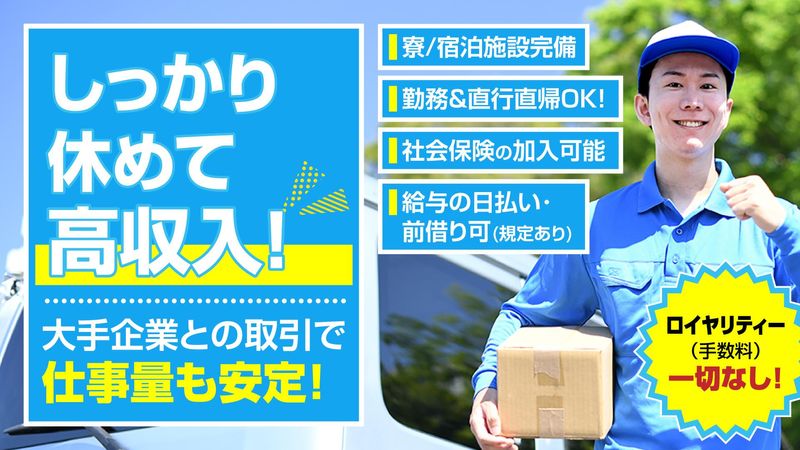 職種/仕事内容 | 仕事内容 ✨このお仕事の魅力✨ 【安定&高収入を両立】 L業界トップクラスの歩合率で 効率よく稼げる! 【案件豊富&安定供給】 L大手配送業者との長期取引で 常に安定稼働! 【経験を活かせる環境】 L20~30代の現役ドライバーが多数活躍中! 【安心のバックアップ体制】 L車両レンタル・日払い・前払い制度あり! 【生活サポートも万全】 L寮・宿泊施設完備で即スタートOK! 「経験を活かしてさらに稼ぎたい!」 「安定した案件で長く働きたい!」 そんな方にピッタリの環境です。 気になる方は【応募ボタン】をクリック! お電話での応募も歓迎! →【090-6832-5613】 ―――――――――――――――――― ✨仕事内容✨ \経験を活かして効率よく稼ぐ配送ワーク/ 【主な配送先】 ・個人宅や企業への軽貨物配送 【取扱い商品】 ・食品 ・医薬品 ・家具 ・事務用品 ・ネットスーパー商品 など ✅豊富な案件の中からスキルに合った業務をお任せ! ✅希望の働き方も相談OK! ✅会社が支給するレンタカーを使用! 車を持っていなくてもOK! ―――――――――――――――――― ✨案件数が豊富!だから収入も安定✨ 当社はAmazon・ヤマト運輸・佐川急便など 大手企業と強い取引関係があります! 案件数が常に豊富なので 「仕事が途切れない=収入が安定」 経験や年齢に関わらず、 頑張った分だけしっかり稼げる環境です。 ―――――――――――――――――― |