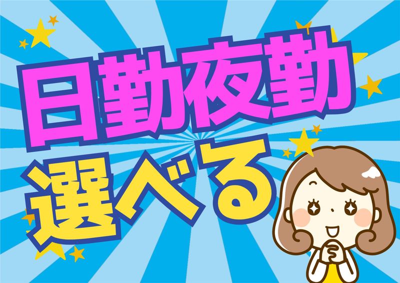 勤務時間 | シフト制 勤務時間詳細 ■日勤固定 9:00~17:00 (実働7時間/休憩60分) ■夜勤固定 22:00~6:00 (実働7時間/休憩60分) ※残業は生産状況により変動いたしますが基本ございません 契約更新期間:3ヵ月 |