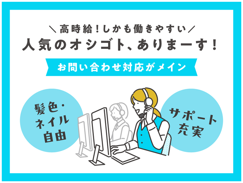職種/仕事内容 | 仕事内容 交通系ICカードを利用されている利用客のポイント受付をして頂く コールセンターのお仕事です。 メールでの対応もあります。 <具体的には> *店舗の方から落とし物についての連絡受付 *お客様からの受付聞き取り *対応頂いた内容を簡単に履歴として残してシステムに登録 基本的に専用システムを用いて処理を行います。 マニュアルがありますので安心してお仕事ができます! <週2日から&時間選択OKで働き方の自由度高め!> 勤務は「週2日/1日3h~」なので負担少なめ! そのほか「土日どちらかお休み」「平日のみOK」「フルタイム」など働き方の相談もOKなのでお気軽にご希望をお伝えくださいね。 <駅チカ便利!> 職場は各線「大通駅」徒歩4分、「さっぽろ駅」徒歩5分他、複数駅から徒歩圏内と、通勤やお買い物にも便利なマチナカオフィス◎ オフィス内には休憩室や更衣室も完備しており、快適な環境です。 |