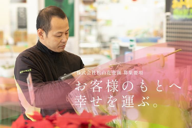 職種/仕事内容 | 仕事内容 ●‥‥‥‥‥‥‥‥‥‥‥‥‥‥● 好きな仕事をして お客様に幸せと感動を届けませんか? 切り花などの加工や販売・配送を担う 「ルート配送」のスタッフ募集中! ●‥‥‥‥‥‥‥‥‥‥‥‥‥‥● Point! ◎未経験からはじめられる! └頼れる先輩が丁寧にレクチャーします ◎風通しの良い環境で働ける! └困ったことは相談しやすい雰囲気です ◎努力した分をしっかり還元! └昇給あり&年2回賞与を支給します 【会社紹介】 株式会社松山花企画は設立以来、愛媛県松山市を拠点とし、切り花や鉢花の加工作業や販売・ルート配送を通して、多くの方のご要望に応えてまいりました。今後も丁寧な対応を心がけながら、彩りのある日々をお届けするために、このたび一緒に働く仲間を募集します。 |
