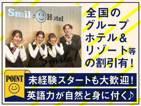 職種/仕事内容 | 仕事内容 全国でホテル経営を行っているホスピタリティオペレーションズ。お客様を笑顔にするために、まずスタッフが幸せでいることを大切にしています。そのために働きやすさも追求。チーム制を取り入れ、残業時間を短縮。働きやすい環境も整えています。残業時は着替えも勤務時間とみなし、1分単位で正確に残業代を払っています。 <破格の高時給> 時給1,437円~はトップクラスの高設定!深夜手当が含まれているので、少ない日数でもしっかり稼げます。週2日~OKのため、昼間はバンド活動や趣味、授業に集中したい方に最適。「短時間で効率よく稼ぐ」が叶う職場です。 <1日のスケジュール例> 2名体制なので休憩もしっかり取れて安心です♪ 23:00…出勤・引き継ぎ/チェックイン対応 24:00…事務作業 02:00…休憩2h(バックヤードで仮眠や食事など自由) 03:00…館内巡回/売上締処理、予約入力など事務作業 06:00…早朝チェックアウ対応/ロビー整頓 08:00…日勤へ引き継ぎ退勤「おつかれさまでした!」 <正社員登用も可能> 全国のグループホテル・リゾート施設が「50%OFF」で利用できる従業員割引あり!旅行や趣味の遠征費を大幅に節約できます。ご家族や友人も割引対象になる嬉しい制度。しっかり稼ぎながら、プライベートの時間もお得に楽しめます。 <英語が活かせる!学べる!> 「今はフリーターだけど、将来は安定したい」という方も歓迎。年50名程度の実績がある正社員登用制度を完備しています。もちろん、今の生活スタイルを優先し「土日のみ」「平日のみ」といったシフト相談も柔軟に対応します。 <宿泊割引制度> 全国の系列ホテル、リゾート施設が、当日ベストレートの50%0ffで宿泊できる全従業員対象の宿泊割引制度あり!全国のホテル、リゾート施設が対象!なんと本人不在でも適用!2親等以内は50%off、3親等・ご友人は25%off。ご友人にも適用されますので旅行好きの方は必見です!本人不在でも適用されますので、プレゼントにも!※一部施設を除く、社内規定あり <正社員登用制度> <正社員登用制度>毎年50名程度のアルバイ トが契約社員、正社員に登用されています。 登用制度から支配人になった方も多くいらっ しゃいます。 また、登用後の研修もご用意しておりますの で、自身の今後のキャリアをイメージしやす くなるようサポートしております。 <研修制度> 各ホテルで研修リーダーが傍について丁寧に 指導いたします。また、スマートフォンでも 確認いただけるマニュアルや動画コンテンツ もありますので、気になる時はいつでも確認 いただけます。 <立地情報> ●スマイルホテル那覇シティリゾート アクセス● 最寄りの沖縄都市モノレール線「旭橋駅」よ り徒歩10分ほどの場所にあります。また、 「県庁前駅」からも徒歩約10分、「西武門」 バス停からは徒歩数分でアクセス可能です。 周辺に、那覇市福州園や那覇市立上山中学校 などがあります。 <ブランドの紹介> 【笑顔とチームワークで、お客様の「明日」を支えるホテルです】 「スマイルホテル」が大切にしているのは、 その名の通り、お客様がほっと安心できる笑顔と、清潔で快適な空間です。 ビジネスや観光で訪れるお客様にとって、ホテルは旅の疲れを癒やす大切な場所。 あなたの明るい挨拶とスムーズなチェックインが、お客様の明日への活力になります。 私たちと一緒に、最高のスマイルを届けましょう。 |