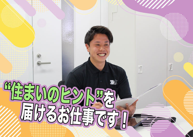 職種/仕事内容 | 仕事内容 「売る」よりも、「気付いていただく」仕事。 ――お客様が見落としている“住まいのサイン”に気付いてもらう、きっかけづくりです。 あなたが届けるのは、 「せっかく建てたマイホームを長持ちさせるヒント」。 外壁のメンテナンスは、実は“どこかで必ずやらなければいけないもの”。 小さなヒビや色あせなど、普段の生活では気付きにくいことを、 あなたの案内で知っていただくことができます。 「うちの外壁、大丈夫かな…?」 そんな風に関心を持っていただけたら、それで十分。 お客様にとって必要な情報をお伝えするのが、あなたの役目です。 無理に売り込む訪問営業ではありません。 絶対に必要になる外壁メンテナンスの“無料見積り案内”だから、 未経験でも始めやすいんです。 <仕事内容> 外壁塗装のご提案を通して、 「住まいの困った」を解決するお仕事です。 ▼STEP 1:お客様のお宅を訪問 ▼STEP 2:外壁の状態を一緒にチェックして気付きを共有 ▼STEP 3:必要があれば、無料見積のご案内と次回訪問のお約束 ここまでがあなたのお仕事。 ご契約などの本格的な商談は、別の専門スタッフが担当します。 だから、「売らなきゃ」というプレッシャーはゼロ! ◎アポ取り&案内に特化!契約業務は担当外 ◎訪問先は事前に用意・チームで分担/地図アプリ&社用タブレット支給 ◎1件あたり15〜30分ほどで完了 ◎服装・髪型自由/ネイルもOK(清潔感があれば) -・-・-・-・-・-・-・-・-・- 未経験OK!充実の教育制度 -・-・-・-・-・-・-・-・-・- ■入社後は2~3週間の初期教育あり ∟ビジネスマナーから外壁塗装の基礎までしっかり学べます。 ■先輩とのロープレや同行も実施 ∟実際の会話の流れがつかめるので安心です。 ■その後もチーム制(2~3体制)&再教育OK ∟「やっぱりもう一回学びたい…」も大歓迎! -・-・-・-・-・-・-・-・- インセンティブについて -・-・-・-・-・-・-・-・- この仕事の面白さは、 “売らなくても成果になる”ところ。 あなたが丁寧に聞いた「住まいの困りごと」が、 後日、外壁塗装の提案につながればそれが成果に! 平均して1件につき10万円前後のインセンティブを支給し、 2件目は20~30万円、3件目は30~40万円…とステップUPします。 当社案内スタッフの平均月収は45.5万円! 2024年の平均年収は605万円でした。 たとえば―― 未経験で入社した20代スタッフが、 1年で月収60万円を達成した例も。 営業って難しそう…と思っていた方ほど、 「意外と自分にも向いてた」と感じていただけるはずです。 -・-・-・-・-・-・-・-・-・-・-・-・-・- 将来を見据えて働ける、ちょうどいい環境 -・-・-・-・-・-・-・-・-・-・-・-・-・- 「長く続けられる仕事がいいな」 そんな想いに、ちゃんと応える働き方があります。 ■残業は月7時間以下/業務終了後、直帰制度の導入 ■年間休日120日/月8日以上休み/5連休も取得OK ■産前・産後・育児・介護休暇あり 「今日は体調が悪くて…」そんなときも、 チームでフォローし合う風土が根づいています。 ライフスタイルが変わっても、ずっと続けられる。 そんな営業の働き方、ここで叶えてみませんか? -・-・-・-・-・-・-・-・-・-・-・-・-・- あなたの「やってみたい」をしっかり応援 -・-・-・-・-・-・-・-・-・-・-・-・-・- 営業として数年の経験を積んだ後(3年目以降申請可能)からは、 キャリアパス制度をご利用いただけます。 ◎商談担当やマネージャーなど、営業職でのステップアップ ◎人事や広報など、他部署への異動・挑戦も可能 当社は、あなたの「やってみたい」をしっかりサポート。 多彩な道の中から、自分らしい成長を実現できる環境です。 |