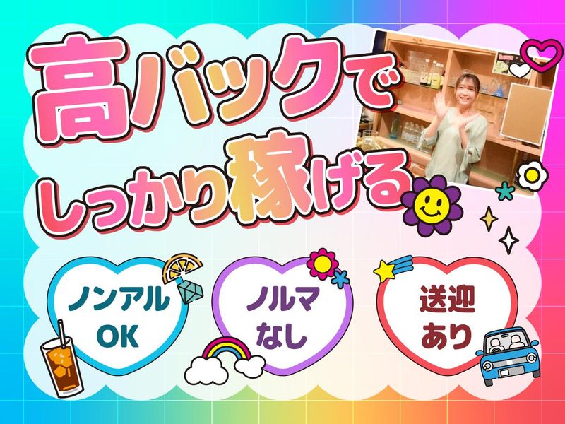 職種/仕事内容 | 仕事内容 ⭐NEW OPEN!スタッフ募集⭐ 新規オープンだから、人間関係も まっさらから始められます♪・。 - ✅服装・ネイルピアスも自由! ✅未経験さんも大歓迎! ✅ノンアルでも◎/ノルマ無し ✅しっかり稼げるドリンクバック♪ ✅終電の心配ナシ!送りあり *.·┈┈┈*.·┈┈┈*.·┈┈┈*.· <バーのお仕事って?> ■ご注文いただいたドリンク作り ■接客、お客様と会話 ■カラオケの選曲 など お客様が楽しい時間を過ごせるように あなたらしい接客で コミュニケーションをお願いします☆彡 ⭐未経験さんも大歓迎! しっかりあなたをフォローします! *.·┈┈┈*.·┈┈┈*.·┈┈┈*.· ✨ドリンクバックや各種手当あり✨  ̄ ̄ ̄ ̄ ̄ ̄ ̄ ̄ ̄ ̄ ̄ ̄ ̄ ̄ ̄ ̄ ̄ ノンアルコールドリンクでもOK! お酒が飲めない方でも安心です。 また、ドリンクバックは20%還元! ドリンク一杯で最低+200円の 手当をGETできますよ◎ ✨送迎あり!帰りも安心です✨  ̄ ̄ ̄ ̄ ̄ ̄ ̄ ̄ ̄ ̄ ̄ ̄ ̄ ̄ ̄ 「終電が早いから心配」 「しっかり稼ぎたいのに終電が…」 と帰りの心配はご無用♪ 送りがあるので、安心して帰宅できます! 出勤時も、送迎の相談OK! お店は、茨木市駅徒歩5分圏内なので 通勤には便利な立地ですよ◎ |