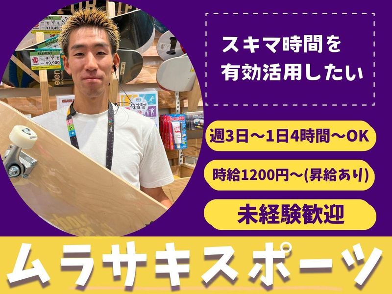 職種/仕事内容 | 仕事内容 ✨接客・販売/商品陳列 /SNS投稿などのお仕事✨ ✅サーフ系アイテムに囲まれてお仕事♪ ✅ムラスポ商品を特別価格で購入OK! ✅髪色・ピアス・ネイルOK! ✅フリーター・学生さん活躍中◎ ✅未経験スタートも大歓迎! ༶ ༶ ༶ ༶ ༶ ༶ ༶ ༶ ༶ ༶ ༶ ༶ ༶ ༶ ༶ ༶ ༶ ༶ 【仕事内容】 アパレル・シューズ・雑貨などの 販売接客をメインに スケートボードやスノーボード、 サーフィン関連商品の陳列などの 店舗全体のお仕事をお願いします。 <主な業務> ⏩接客・販売 ⏩レジ打ち ⏩品出し・商品の陳列 ⏩SNS投稿 など まずは「笑顔で挨拶」からスタート! 商品の整理や片付けなどの簡単な作業から 徐々に慣れていきましょう! 基本業務の研修に加えて、 サーフィンやスノーボードの研修あり◎ あなたの「やってみよう」を私たちが 全力で応援します! ༶ ༶ ༶ ༶ ༶ ༶ ༶ ༶ ༶ ༶ ༶ ༶ ༶ ༶ ༶ ༶ ༶ ༶ ⭐商品割引制度あり 全ての商品が特別価格で購入OK! スタッフならではの嬉しい制度です。 ⭐社員登用制度あり 「アルバイトから正社員へ」 将来的なキャリアを見据えた働き方も応援♪ ⭐髪型・服装自由! 髪色・ネイル・ピアスOK! トップスは制服貸与、ボトムは私服OKです◎ ⭐未経験OK&販売ノルマなし 丁寧なサポート体制あり! 簡単な作業から無理なくスタートできます! ⭐学生スタッフ活躍中! テスト期間中のシフト調整もOK! 「テストがあるから…」という理由など 気兼ねなくご相談ください。 ༶ ༶ ༶ ༶ ༶ ༶ ༶ ༶ ༶ ༶ ༶ ༶ ༶ ༶ ༶ ༶ ༶ ༶ |