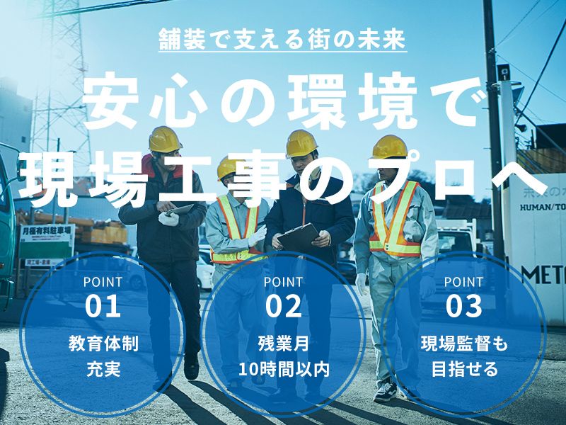 職種/仕事内容 | 仕事内容 +++++++++++++++++++++++++ 未経験から手に職を。 安心の環境で現場工事のプロへ +++++++++++++++++++++++++ \求人のPOINT/ ✅未経験でも安心の教育体制 ✅定着率の高さが魅力 ✅昇給あり ✅長期休暇あり <株式会社サトー重工とは?> 公共機関および民間企業を対象に、 道路舗装工事や宅地造成工事を 手がけている会社です。 <仕事内容> ●商業施設・公共施設などでの現場作業 ●道路や駐車場の舗装作業 ●構造物や土木資材の設置作業 ●チームでの安全確認・進行対応 ⇒直行直帰OK! 現場で先輩作業員が丁寧に指導! 未経験からでも安心して働ける環境です! |