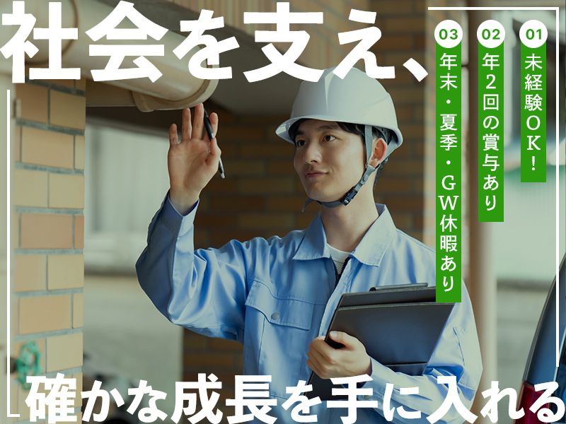 対象となる方 | 必要資格・経験 <必須> ・普通自動車免許(AT限定可) <歓迎> ・配管技能士や管工事施工管理技士 <POINT> ・U・Iターン歓迎 ・未経験者歓迎 |