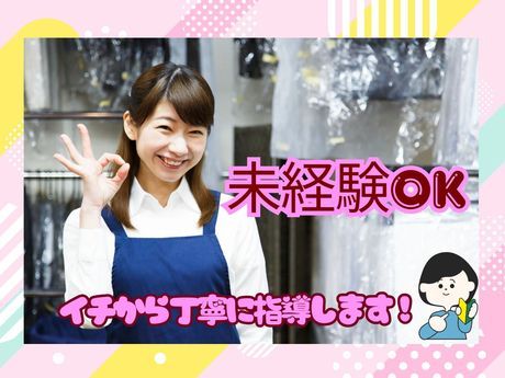 職種/仕事内容 | 仕事内容 <女性スタッフ多数活躍中> 気軽に始められるカンタンなお仕事! 土日祝時給UP!週2日~OK! 主婦(夫)さん・Wワーカーさん大歓迎! あなたに合った曜日・時間での勤務を 考慮します!扶養内勤務もOK! 丁寧なサポートで未経験でも安心! 嬉しいクリーニング割引制度もあり! 【仕事内容】 クリーニング店の受付・レジ、 衣服の仕分け・お渡し等をお任せします。 <具体的な内容> ・お客様から衣服の受付 ・工場への出荷作業 ・クリーニングの済んだ衣服の 仕上がりチェック ・お客様へ衣服の返却 <初心者さんも活躍中!すぐ覚えられる> 接客や衣服の扱い方などは研修で イチから丁寧に指導します。 難しい作業はないので、 ゆっくり丁寧な作業を心掛ければOK! 働きながら接客スキルや衣服の知識を 身に付けていきましょう! <ライフスタイルに合わせて自由に働けます!> 「第二の人生を楽しみたい!」 「子供の手が離れて、時間が出来た」 「年齢は高めだけど、元気だしフルタイムで働きたい」 「新しく色々覚えるのは難しそうだから、 自分でもすぐできる仕事だといいな~」 店舗で働いている60代女性スタッフは、 「子供が独り立ちしてから家で旦那と二人で、 時間も余裕だしパートしたいな~と思ってたの。 年齢が高めだから断られちゃうことも多かったんだけど、 まだまだ元気だしフルタイムで働きたくって! クリーニングって家事の知識活かせるし、 常連さんも多くて楽しいから週5で勤務しちゃってるわ~」 と、話してくれました! 衣服を扱うクリーニング店では 家事の知識・経験をすぐに活かせます! 「今まであんまり仕事探しをしたことなくて」 「新しい知識をいれるのも不安」 そんな心配はいりません! あなたの経験が必要な職場なので、 ぜひ当社で第二の人生を始めてみてください! |