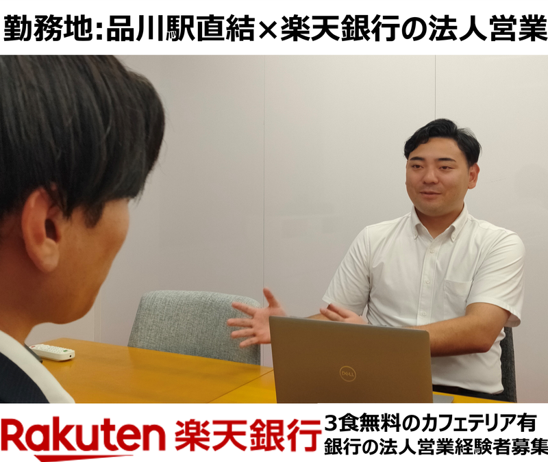 職種/仕事内容 | 仕事内容 ★東証プライム上場、インターネット銀行のリーディングカンパニー!預金・資金調達・運用・融資などの金融サービスの提供、財務・経理業務のDX化のサポートで法人顧客の課題を解決いただきます★ ここ数年で企業のネット銀行の利用機会が増加し、ネット銀行と取引する企業数は10年で5倍、ネット銀行をメインバンクに選ぶ企業は10年前(2014年)と比較すると、5.4倍となっています。 そんなネット銀行のシェア拡大が続く中、楽天銀行は楽天Gの取引先ネットワークも活用し、ネット銀行の中で法人取引社数トップとなっています。 顧客規模は中小企業から東証プライム上場の大企業まで様々ですが、扱う金額は大きく、社会に影響を与える様なダイナミックな仕事に関わることが出来るのも醍醐味です。 楽天Gならではの自由な社風で、年齢・年次に関係なく、頑張り次第で評価されるフラットな環境です。銀行特有の縦社会ではなく、若手中堅共に時には助けあい、切磋琢磨し合う環境です。 【採用背景】 2023年4月に上場を果たした当行は、成長をさらに加速するために個人向けサービスに加えて、法人向けサービスを次の柱として拡大していきたいと考えており、そのための営業人員の拡大です。 まずは5~10名程度の採用を予定していますが、その後も継続的に増やしていく方針です。 【具体的な仕事内容】 ・営業先の選定、および営業計画の立案 ・顧客課題・ニーズのヒアリング ・預金、資金調達、運用、融資などの総合的な金融サービスの提供 ・顧客の財務・経理業務におけるDX化のサポート ・上記業務に付随した融資起案、資料作成・契約書作成 など 総合営業を通じて顧客との関係を深めることで、社長や経営幹部に信頼され、競合他行よりも先に相談される担当者になることがやりがいのひとつです。 さらに既存の商品サービス推進だけでなく、新しいことに取り組むことができる機会も多くあり、こうした環境に身を置くことでビジネスパーソンとして大きな成長感を得られる環境です。 【仕事の魅力・面白さ】 ■楽天Gの取引先ネットワーク活用 ――――――――――――――――― 楽天グループは70以上のサービスを提供しているため、楽天市場に出店する企業や楽天トラベルに加盟する宿泊施設など、非常に数多くの取引先・提携先があります。 それぞれに合ったアプローチを考え実行し、新たな顧客として獲得したり、当行の顧客に楽天グループの取引先・提携先を紹介することでビジネス・マッチングを実現することが可能です。 営業エリアは首都圏が中心ですが、規模やエリアに制限はありません。中小企業から東証プライム上場の大企業まで日本全国の様々な企業の中から、チームで議論しながら営業先の選定やアプローチ方法を決めていきます。 ■楽天Gの総合力を活かし、自由な発想で顧客課題を解決 ――――――――――――――――― 単品売りの営業ではなく、顧客課題の解決のために総合的な営業提案を行います。 RM(リレーションシップマネージャー)として、ストラクチャードファイナンスや信託商品、FinTech関連のサービスなど、お客様にとって本当に必要なことは何かを考え、提案していく面白さがあります。 幅広い商品・サービス知識や営業スキルを身に付けることも可能です。 扱う金額も大きく、社会に影響を与える様な仕事に関わることが出来るのも醍醐味です。 ■個人の能力・資質を評価 ――――――――――――――――― 少数精鋭の組織でまだ発展途上のため、年齢や入社年次は関係なく、頑張り次第で管理職としてチームを率いるチャンスもあります。 実際に現在の最年少リーダーは30歳。年齢・年次に関係なく実力を評価されるフラットな環境で物事を進めるスピードの速さも当行の強みの1つです。 新しいことにチャレンジできる機会も多いので、ビジネスパーソンとして大きな成長を実感できる環境です。 ■カスタマイズできる幅広いソリューション提案 ――――――――――――――――― デジタルバンクとしての技術力を活かし、顧客の財務・経理業務におけるDX化をサポートしたり、利便性の高いサービスを提案可能です。 当行は他行と異なりシステムを内製化しているため、顧客のニーズに合わせたカスタマイズの要望等にも柔軟に対応することが可能です。 【職場環境】 法人顧客にとって、営業担当者は当行の「責任者」。顧客の要望やニーズに対応するために、社内の関係部署を巻き込み、自らも手を動かして「やり切る」気持ちが求められます。 また、営業のターゲット先選定やアプローチの方法についても、チームで議論しながら作り上げていくスタイルのため、上からの指示通りに動くのではなく、何かを実現するために自ら「作戦」を立てて試行錯誤することが好きな人にとっては非常にやりがいがある環境です。 |