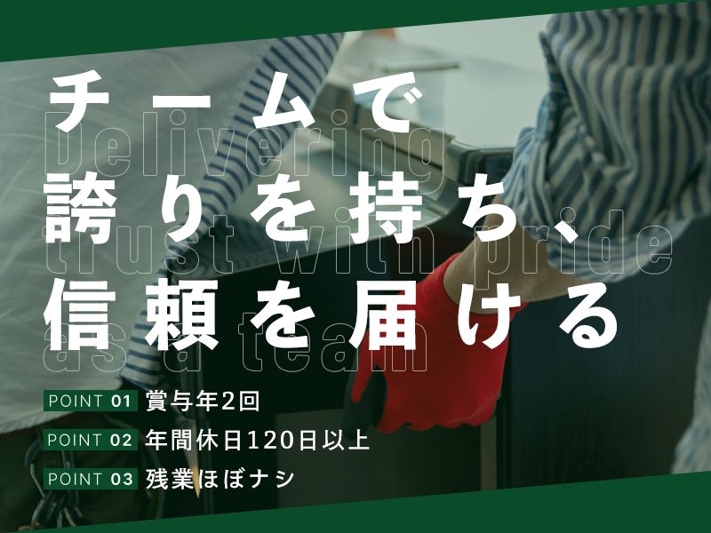 職種/仕事内容 | 仕事内容 / ただ運ぶだけじゃない。 お客様との会話も楽しむ 「接客」要素のある配送です。 \ 【主な業務内容】 近畿圏内でヤマハ・ローランドの 「メーカー専属配送」として ピアノや精密機器を扱います。 ✓大手直取引で安定性抜群! ▼負担少なめの「チーム制」 必ず2~3名のチームで行動。 専用台車や機材を使うため、 人力には極力頼りません。 ▼未経験でも安心の環境 先輩がすぐ横にいるので、 分からないことは即質問OK。 移動は拠点から30分圏内、 1日平均5~6件と無理なし。 ▼お客様からの「ありがとう」 配送先は個人宅も多いため、 感謝の言葉が直接聞ける やりがいのある仕事です。 ============== まずは電話応募も大歓迎! ⇒TEL:078-944-1230 「気になる」保存で 後からいつでも見返せます! ============== |