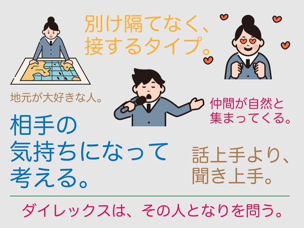 対象となる方 | 応募資格 学歴不問 ※中卒や高卒の方も活躍! ※販売職は初めてという方、歓迎します。 └特別な経験・スキルは不要です。 ※「そろそろ正社員にというフリーターさんや、 ブランクがあり、久々の社会復帰という方も 大歓迎です。 ※「いつものキミのまま、あなたのままで。」 ご応募ください。 ▼▼▼ おしゃべりが苦手、黙々コツコツなタイプ、 逆に、おしゃべりが好き、 仕事とプライベートはきっちり分けたい派なんて人も 大歓迎しています。 \Uターン・IターンもOK/ スタッフみんなの、 「お帰りなさい」や「いらっしゃい」が待っています。 |