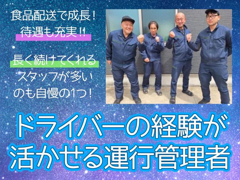 職種/仕事内容 | 仕事内容 / ドライバー経験があればOK! 海老名営業所の所長候補 \ 食品配送を支える海老名営業所で ドライバーが安心して働けるよう 環境づくりや運行管理を行う仕事です。 まずは同乗研修からスタートし、 配送コースや業務の流れを しっかり把握していただきます。 その後、管理業務を徐々にお任せします。 ベテラン所長が運行管理・労務管理・ 整備管理など物流管理の基礎から応用 までしっかり教えます。 普段は運転することはありませんが ドライバーに欠員が出た際は、 代行する場合もあります。 所長昇格後は月給も5万円以上UP。 責任とともにやりがいも大きくなります。 - 1日のスケジュール(一例) - ・点呼業務・配車業務等 運行管理業務 ・所内通達作成及び周知 ・荷主様への報告書作成 ・車両点検・修理の手配 ・労務管理・安全衛生推進業務 ~きりの良いところで1時間の休憩~ ・荷主様会議への出席 ・道路状況の確認 ・ドライバ―への運行ルートの指示出し ・ドライバ―との個人面談やコミュニケーション ・事故防止講習の対応 ・求人応募者との面接 - 近い将来、海老名営業所の所長として 営業所のトップへステップアップを 想定した求人となります。 少人数の会社なので、ベテラン所長が 自ら後継者を育てていきます。 「ただ運行管理をする」だけではなく、 現場・管理・マネジメントを総合的に 経験できるポジションです。 運行管理者や整備管理者の資格取得も 推進しております。 ドライバーの次のキャリアを本気で 考える方にこそ、最適な環境です。 |