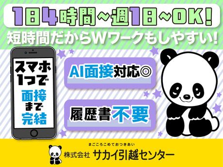 その他 | その他 履歴書不要 【ブランド名】 サカイ引越センター 【事業内容】 引越運送、引越付帯サービス業務 |