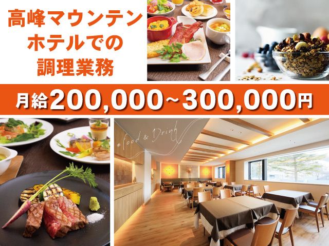 職種/仕事内容 | 仕事内容 高峰マウンテンホテルでの調理の業務です。 近くにある高峰マウンテンパークでの勤務もあります。 ◆業務内容◆ ・調理 ホテルレストランで宿泊客の 夕食・朝食の調理をお願いいたします。 これから調理の世界で活躍を考えている方等 周りがしっかりフォローしますし、調理の 経験がない方でもできるお仕事をお任せします。 経験、未経験は問いません! 調理師の方優遇いたします。 ~・~・~・~・~・~・~・~・~・~・~・~・ 感動的な自然と出会えるホテル。 星降る雲上のリゾートではたらきませんか。 将来性のある職場ですので安心して長く働けます。 小諸市の観光を代表とする高峰高原で一緒に働きませんか。 夏はハイキングを楽しめたり、冬はスキー場が近くに あるのでウィンタースポーツも楽しめます。 標高2000mの自然豊かな環境であり 山好き、星好き、カメラ好き、スポーツ好き、 接客好きにはもってこいの場所。 宿泊者限定でスペシャルディナーなどホテルイベントも多数開催 お客様の心に残る感動の旅のお手伝いをしましょう。 ・小諸市はもちろん、東御市、佐久市、上田市 御代田町などからも勤務可能エリアです。 |