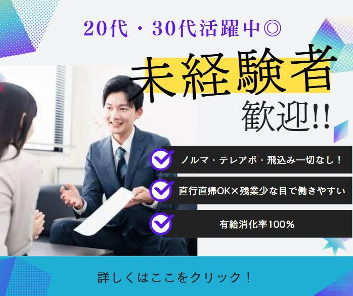 職場環境・雰囲気 | 職場環境 ✅20代・30代活躍中 └当社では若手社員が多数活躍しています◎ ステップアップ制度もご用意しています。 ✅未経験者活躍中 └先輩社員は未経験者からのスタートがほとんど! 入社から3ヶ月~半年間は先輩と同行をして頂き、 少しずつ仕事に慣れて頂きます。 |