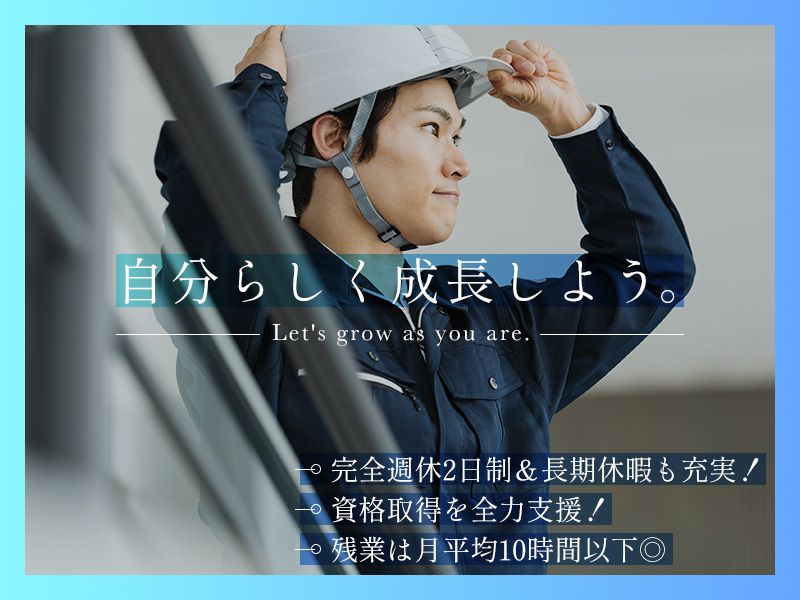 職種/仕事内容 | 仕事内容 +・・・・・・・・・・・・・・・・・・・・・・・・・・・・+ 国家資格取得の支援あり! 未経験から一人前になれます! +・・・・・・・・・・・・・・・・・・・・・・・・・・・・+ 【 仕事内容はコチラ 】 工事現場における 総合管理業務をおまかせします! ▽具体的にはこんな業務 ・施工管理の立案 ・安全管理 ・予算・原価管理 など 【 ゼロから成長できる! 】 教育体制が充実しているため、 初めての方も安心して働けます。 わからないことはなんでも相談OK! 《働くうえでのポイントはここ》 *必要なのは車の免許だけ *土日祝休みの完全週休2日制 *長期休暇充実 *残業時間は少なめ◯ *賞与は年2回&決算賞与あり *資格手当など各種手当も充実 *社用車貸与&直行直帰OK *仕事量は安定&退職金制度あり |