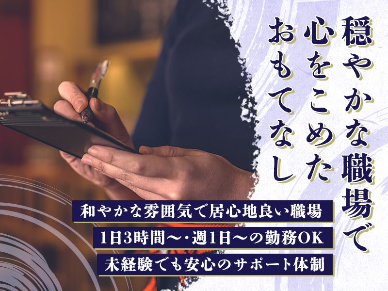 職種/仕事内容 | 仕事内容 ================== 歴史ある蕎麦を一緒に提供しませんか? プライベートと両立できる環境〇 心地よく働ける出雲蕎麦のお店です! ================== \\働きやすさ間違いナシ// ✿シフト自由!週1日〜勤務OK! ✿職場の雰囲気〇 ✿おいしい出雲蕎麦のまかない付き! ✿社員登用あり〇 ✿未経験者歓迎! 【 主な業務内容 】 ・ホール作業 ・調理補助 \老舗の本手打ち出雲蕎麦のお店/ 「出雲蕎麦」は日本三大蕎麦のひとつ。 出雲蕎麦の特徴は、蕎麦の色が黒っぽく 香りが高いことです。 【好きな時間に働ける!】 学校終わりや育児の合間に 好きな時間に働けます〇 勤務日数や時間は お気軽にご相談ください! |