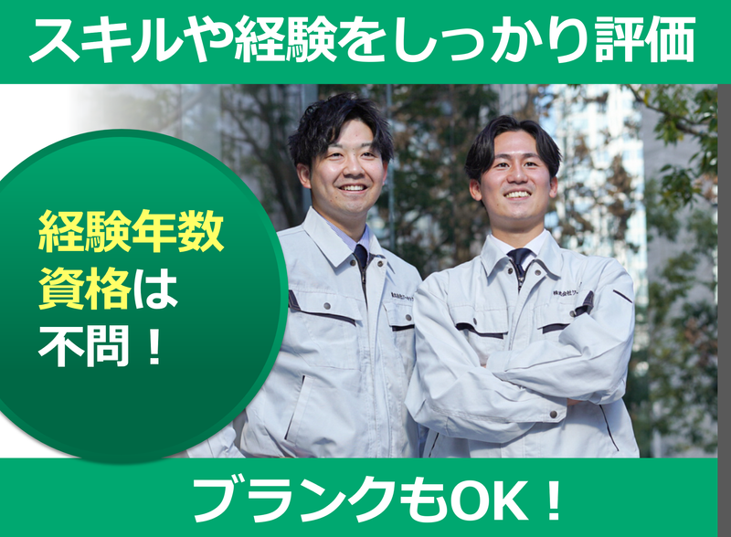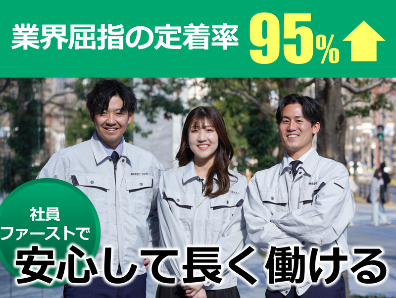待遇・福利厚生 | 【保険制度】 雇用保険、労災保険、健康保険、厚生年金 【福利厚生】 待遇・福利厚生 【福利厚生】 ・定期健康診断 ・慶弔祝金 ・産休育休制度(実績多数あり) ・社内資格制度 ・各種研修制度 ・資格取得支援制度 ・社用携帯支給 ・駐車場完備(プロジェクトによる) ・宿舎、寮完備(出張の場合) |