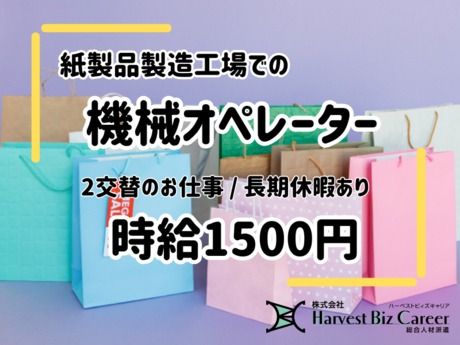 職種/仕事内容 | 仕事内容 具体的には 日常生活でも馴染みのある紙袋等を製造している工場での機械オペレーター ・原料となるロール紙を機械にセット ・機械のボタン操作 ・仕上がりの確認 作業内容は非常にシンプル!! 複数人で作業を行うので、分からないことは聞きやすい状況が整っています☆ |