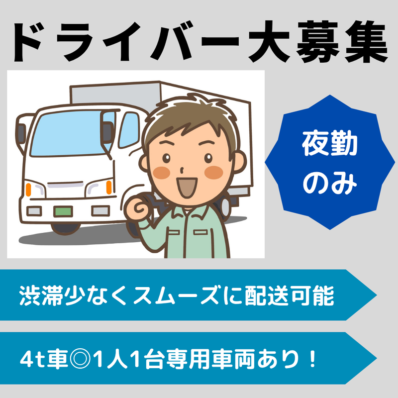 職種/仕事内容 | 仕事内容 電話でのお問い合わせも大歓迎 046-271-2055 まで、お気軽にどうぞ 【ドライバーデビュー大歓迎】 ライフスタイルに合わせて希望コースを 選べるので無理なく長く働けます。 中途社員比率はなんと7割以上! 【お仕事について】 4t車での冷蔵食品の配送をお任せします。 積荷、積み降ろしは番重(ばんじゅう)と 呼ばれる薄型の運搬容器を使用。 プラスチック製なので安心です◎ ★配送先:神奈川県内のセンターや工場 ※1日1件~2件の2運行 ※1勤務150km~200kmほど。 【職場環境】 先輩との同乗研修からスタートするので、 未経験でも安心して始められます。 交通費支給、社会保険完備など 働きやすい環境を整えています。 車両のメンテナンスを自社で行ったり、 ドライバー同士でオイル交換の声掛けをしたり、 自社でできることは自社でやる、 それがドライバーへ給与を しっかり還元できている理由です! ▼▼▼さらに詳細を知りたい方は下記へ▼▼▼ ご家族や大切な方の理解とサポートがあり、 仕事に集中できると考えています。 「家族・親族同席可の面接会」も実施しております。 「休みを重視したい」「稼ぎを重視したい」 「働き方は変則的だから都合に合わせて働きたい」 ドライバーの方にも様々な希望があると思います。 当社では、できるだけひとり一人の希望に合わせた コースを組めるよう複数のコースをご用意。 【固定コースで生活リズムを安定させたい方】でも 【希望収入に合わせて複数コースを組み合わせたい方】 どちらの希望もお気軽にご相談ください。 ❏こんなスタッフ活躍中❏ 30代・40代・若手~中高年が幅広くが活躍中! ドライバー未経験で、異業種から転職してきた社員が7割、 ドライバー経験のある転職者が社員の3割というように、 未経験者・経験者問わず活躍している状況です。 ❏未経験スタートでも安心して始められる理由❏ 運転に自信が持てるようになるまで しっかり同乗して教えていきます。 また、配送コースもライフスタイルや希望収入に合わせて 設定していきますので、無理なく長く続けられます。 何よりスタッフ間のチームワークがいいのが、 当社の自慢なんです♪ ❏準中型免許所持者も可!❏ 大型ドライバー、ルート配送等、運送業界転職者も活躍中! ❏ココがやりがい!❏ ブレーキのかけ方や積荷・積み降ろしの際に、 配慮して運転できるかどうかで 配送する食品へ影響が出ます。 生産者・メーカー・荷主の想いを理解し、 真心を持って配送することが重要です。 また、感謝の心を持った挨拶も大切にしています。 経験・能力よりも、当社の考えに共感できる方を お待ちしています。 |